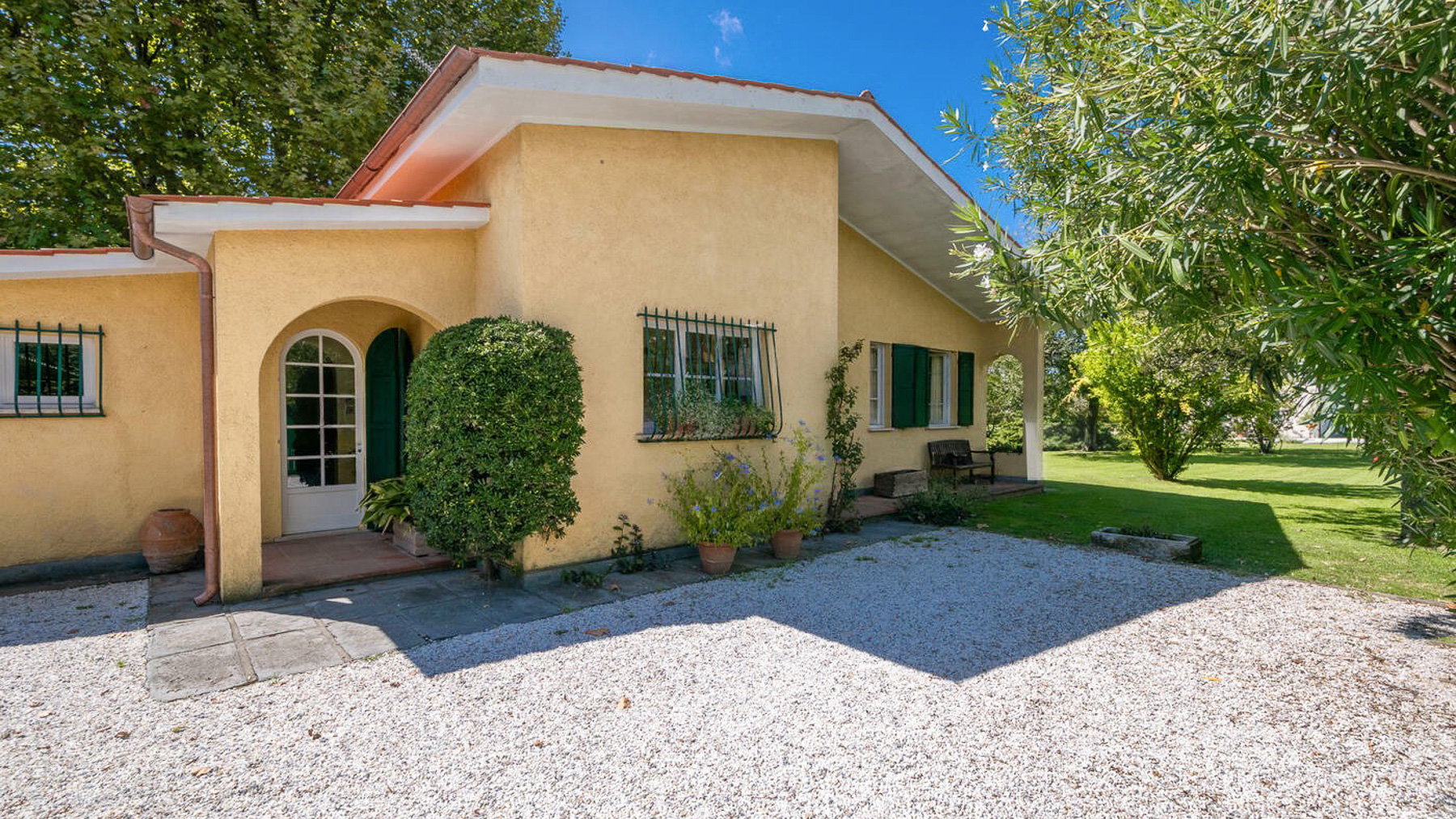 Nel cuore pulsante di Forte dei Marmi, tra il sussurro delle onde e il mormorio della brezza marina, si erge una residenza che incarna il connubio perfetto tra natura e sofisticatezza. Qui, la luce del sole gioca tra le fronde degli alberi, creando un'atmosfera di pace e serenità, mentre il profumo del mare si mescola dolcemente all'aria fresca. Questa straordinaria villa, situata su un terreno di 5.190 mq, offre 185 mq di eleganza abitativa. Con sei ampie stanze e tre bagni, la residenza è un capolavoro di design raffinato, completato dalla firma dell'architetto Michele Vitaloni. Le caratteristiche distintive includono portici accoglienti, una dependance indipendente e una spettacolare piscina di 200 mq, perfetta per rinfrescarsi nelle calde giornate estive. La posizione privilegiata a soli 1 km dalle rinomate spiagge di Forte dei Marmi rende questa proprietà un ideale rifugio di lusso. Vivere qui significa abbracciare uno stile di vita unico, dove ogni giornata è un'opportunità per creare ricordi indimenticabili. Immagina di passeggiare nel tuo giardino privato, lasciandoti avvolgere dai profumi della natura, o di organizzare cene eleganti sotto le stelle, con la brezza marina che accarezza dolcemente la pelle. Questa villa rappresenta un'opportunità irripetibile nel panorama immobiliare di lusso, un rifugio esclusivo dove l'eleganza senza tempo incontra il comfort moderno. Un sogno che diventa realtà per chi cerca il prestigio in una delle località più iconiche della Versilia.