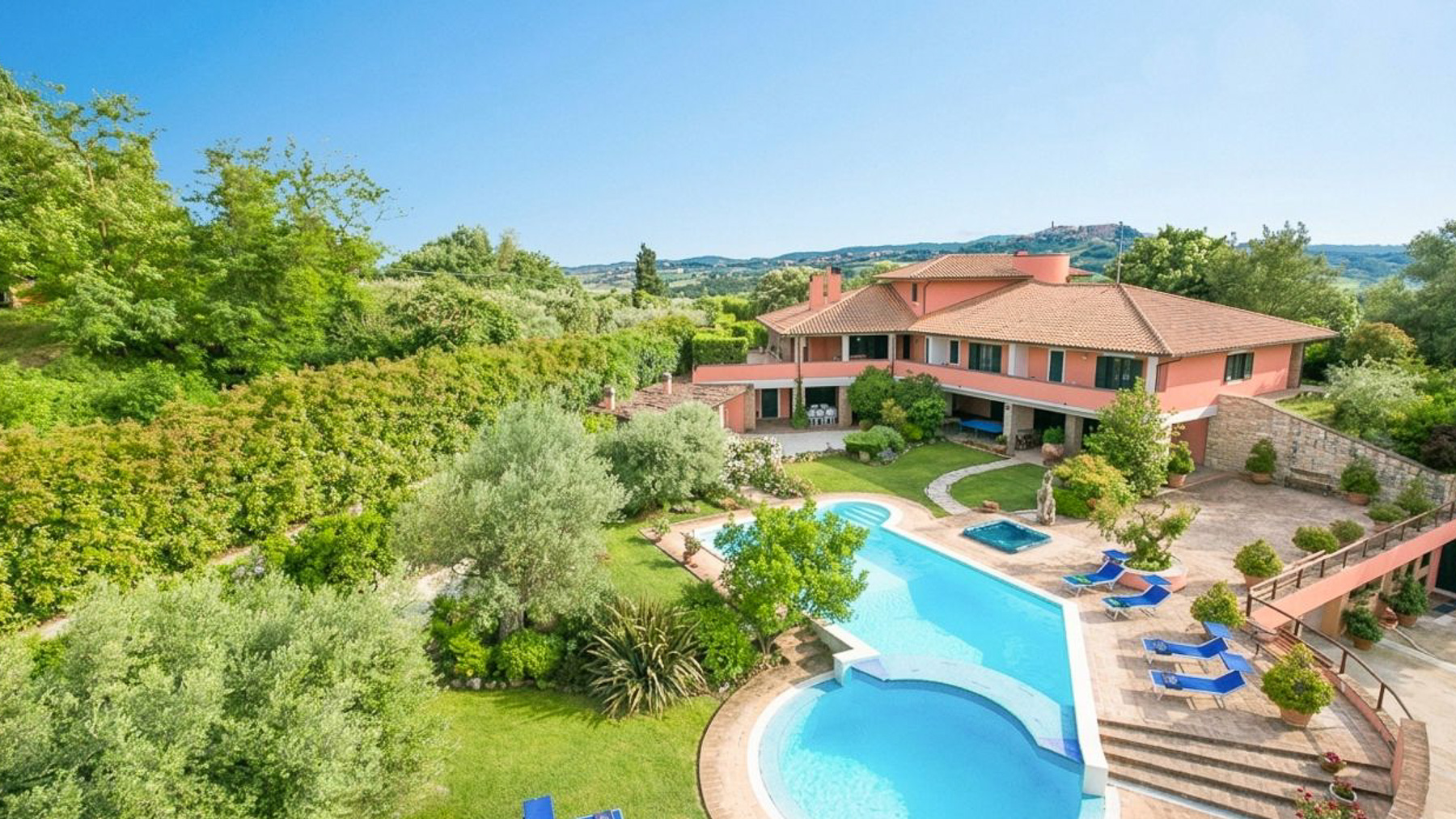 Avvolta tra le dolci colline umbre, a pochi chilometri dalla storica città di Todi, si trova una villa contemporanea che incanta i sensi. La luce del sole danza tra le fronde degli alberi, mentre il canto degli uccelli accompagna le giornate in questo angolo di paradiso. Qui, dove la natura incontra il lusso, ogni momento diventa un'esperienza sensoriale unica. Questa straordinaria proprietà si estende per 669 mq e offre un'ampia gamma di ambienti raffinati. Con 12 stanze, tra cui 6 camere da letto e 9 bagni, la villa è perfettamente attrezzata per accogliere una famiglia numerosa o ospiti per eventi esclusivi. Il giardino curato, che si estende su un terreno di 2,7 ettari, avvolge la villa in un abbraccio verde, mentre la piscina invita a immergersi nei giorni estivi. Un ampio terrazzo offre viste mozzafiato sulla campagna umbra, rendendo ogni giorno un'esperienza unica. Situata a Due Santi, Perugia, la villa rappresenta un rifugio di pace e raffinatezza. Vivere in questa villa significa abbandonarsi a un lifestyle di relax e raffinatezza. Immagina di iniziare la giornata con un tuffo in piscina, seguito da un caffè sulla terrazza con vista panoramica. Le serate si trasformano in momenti magici, con cene all'aperto sotto cieli stellati, accompagnati dalla brezza profumata che attraversa il giardino. Questa villa rappresenta un'opportunità irripetibile nel panorama immobiliare di lusso, un perfetto equilibrio tra eleganza senza tempo e comfort moderno. Un rifugio esclusivo dove ogni dettaglio è pensato per offrire un'esperienza di vita straordinaria.