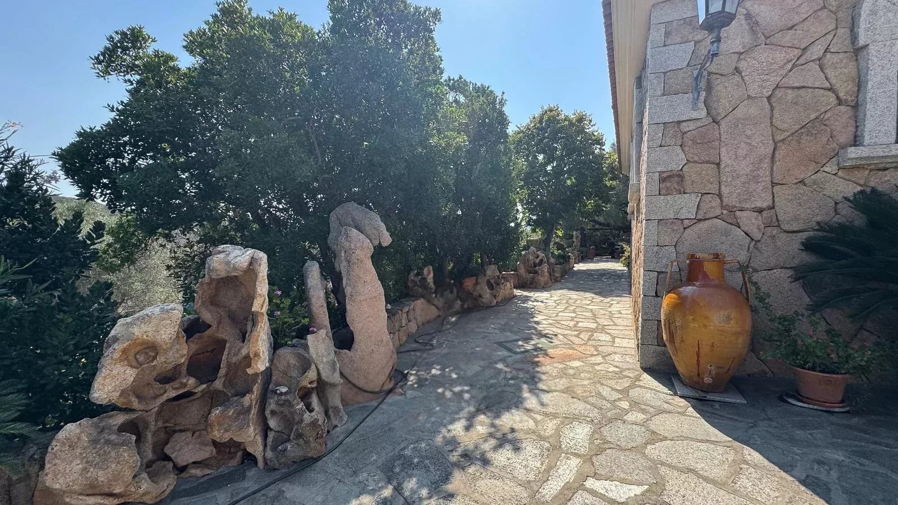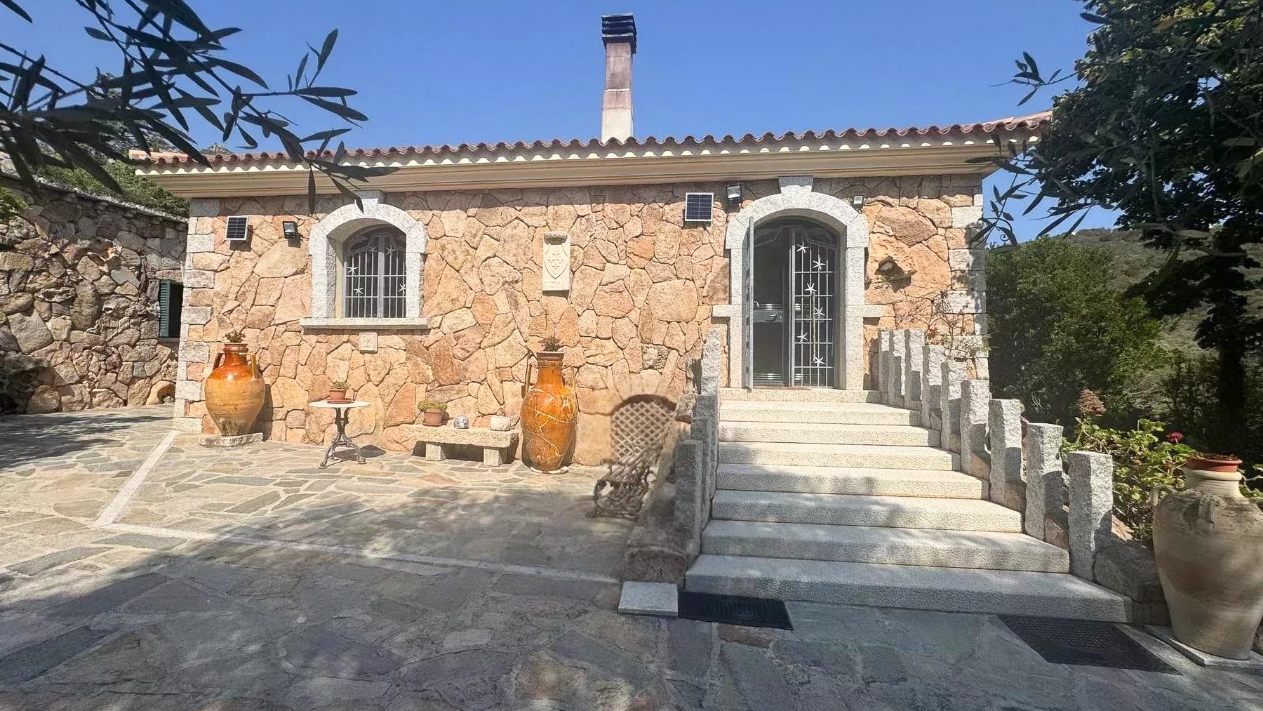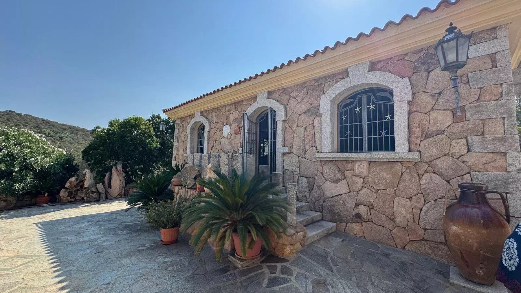 Immersa nel cuore delle colline mediterranee di Cugnana, questa villa in pietra naturale è un rifugio di serenità e lusso. Immagina di essere accolto dal calore della pietra, circondato dal verde degli ulivi e dal profumo dei limoni, mentre il sole tramonta sul mare in lontananza. Qui, ogni giorno è un invito a entrare in contatto con la natura e a lasciarsi cullare dalla quiete. Con una superficie abitabile di circa 235 mq, la villa si sviluppa su un terreno di 6.000 mq, offrendo ampi spazi per il relax e la convivialità. Dispone di cinque camere da letto e quattro bagni eleganti, perfetti per chi cerca comfort e stile. Gli interni, luminosi e accoglienti, sono caratterizzati da elementi tradizionali sardi, come i muri in pietra naturale e le rifiniture artigianali. La terrazza panoramica, sopra la dependance, offre la possibilità di realizzare una piscina, trasformando l’esterno in un'oasi di privacy e bellezza. Vivere qui significa godere di un lifestyle unico, dove la tranquillità della campagna si fonde con la vicinanza alle spiagge della Costa Smeralda. Immagina pomeriggi trascorsi sulla terrazza, immerso nella lettura, mentre la brezza marina ti accarezza dolcemente. Le serate, invece, sono il momento ideale per cene all'aperto, sotto un cielo stellato, con il canto dei grilli a fare da sottofondo. Questa villa rappresenta un'opportunità irripetibile nel panorama immobiliare di lusso, un perfetto connubio tra eleganza senza tempo e comfort moderno. Un sogno che attende solo di essere vissuto.