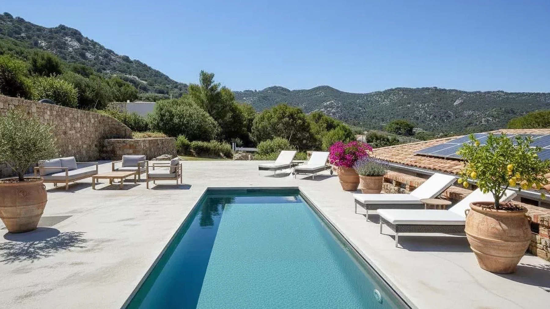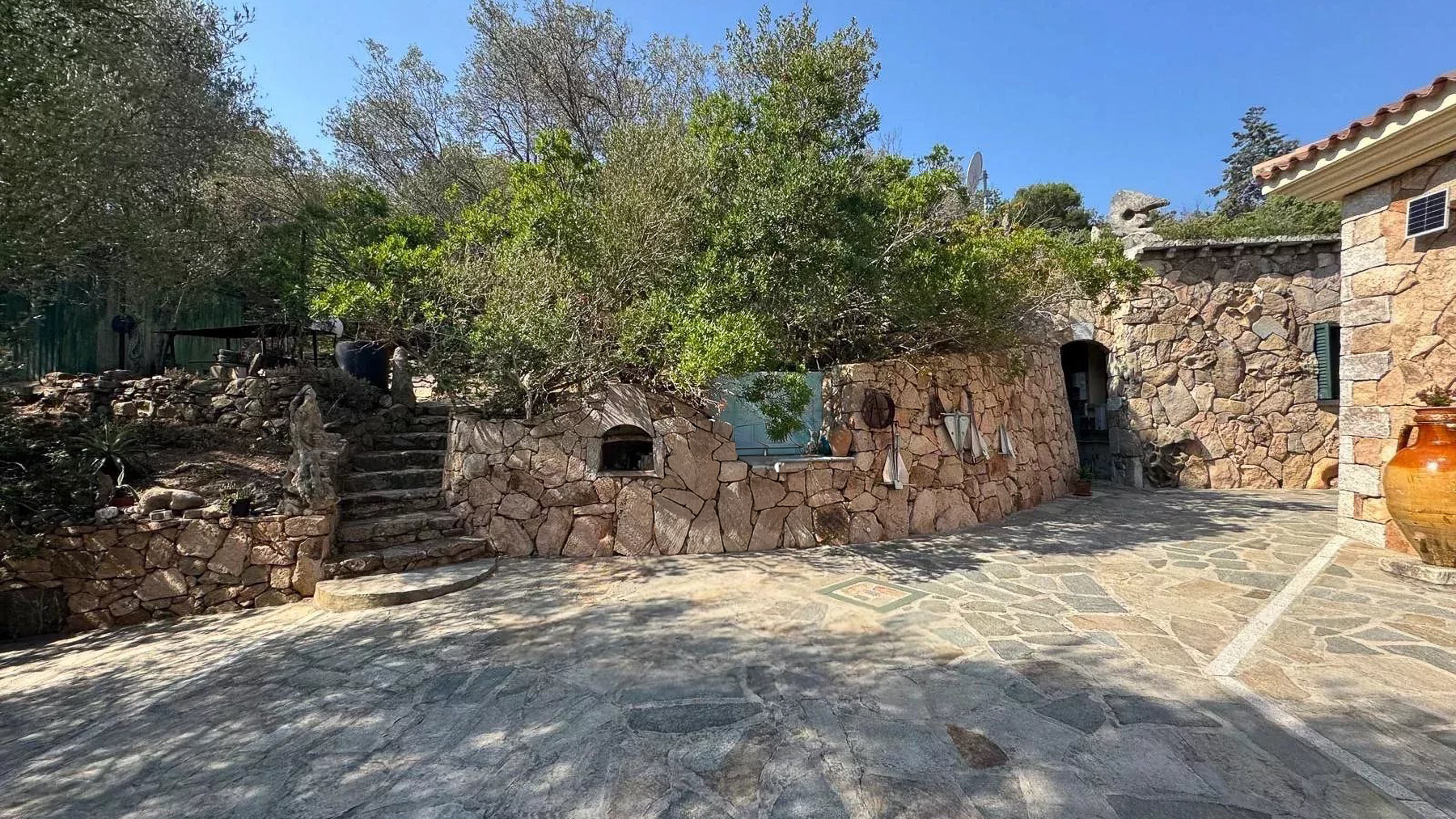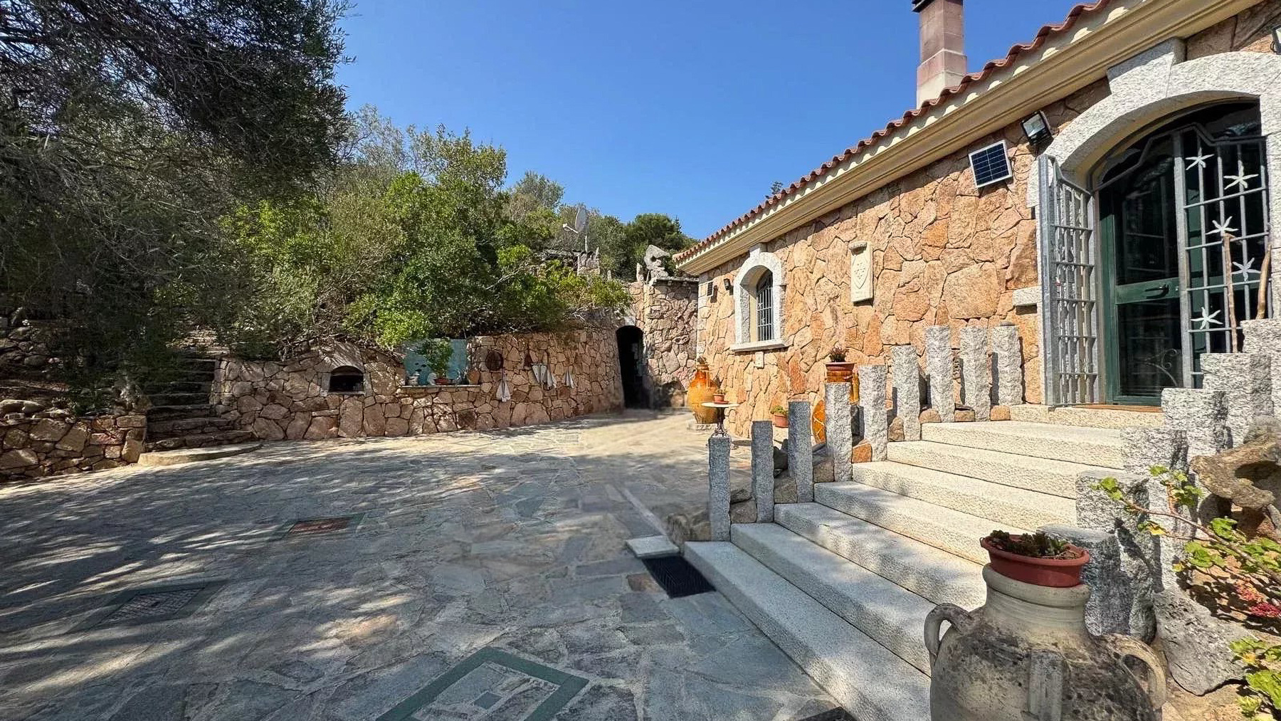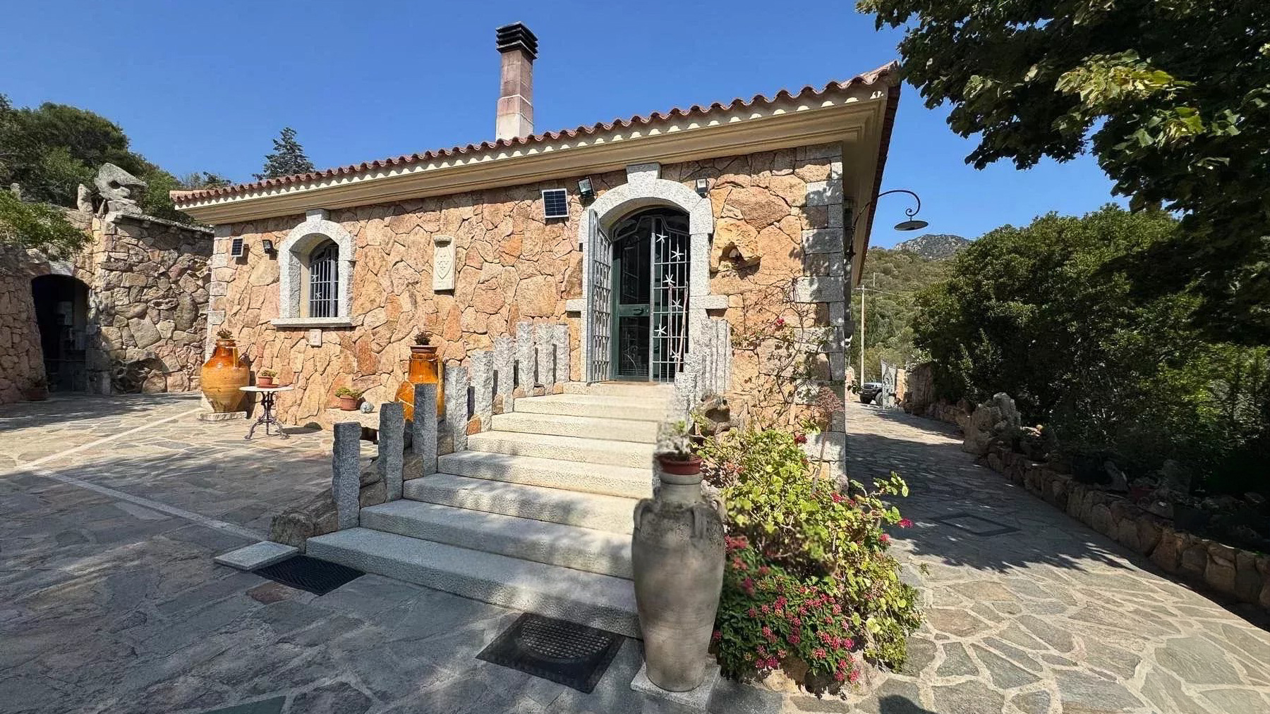Immersa nel cuore delle colline mediterranee di Cugnana, questa villa in pietra naturale è un rifugio di serenità e lusso. Immagina di essere accolto dal calore della pietra, circondato dal verde degli ulivi e dal profumo dei limoni, mentre il sole tramonta sul mare in lontananza. Qui, ogni giorno è un invito a entrare in contatto con la natura e a lasciarsi cullare dalla quiete. Con una superficie abitabile di circa 235 mq, la villa si sviluppa su un terreno di 6.000 mq, offrendo ampi spazi per il relax e la convivialità. Dispone di cinque camere da letto e quattro bagni eleganti, perfetti per chi cerca comfort e stile. Gli interni, luminosi e accoglienti, sono caratterizzati da elementi tradizionali sardi, come i muri in pietra naturale e le rifiniture artigianali. La terrazza panoramica, sopra la dependance, offre la possibilità di realizzare una piscina, trasformando l’esterno in un'oasi di privacy e bellezza. Vivere qui significa godere di un lifestyle unico, dove la tranquillità della campagna si fonde con la vicinanza alle spiagge della Costa Smeralda. Immagina pomeriggi trascorsi sulla terrazza, immerso nella lettura, mentre la brezza marina ti accarezza dolcemente. Le serate, invece, sono il momento ideale per cene all'aperto, sotto un cielo stellato, con il canto dei grilli a fare da sottofondo. Questa villa rappresenta un'opportunità irripetibile nel panorama immobiliare di lusso, un perfetto connubio tra eleganza senza tempo e comfort moderno. Un sogno che attende solo di essere vissuto.