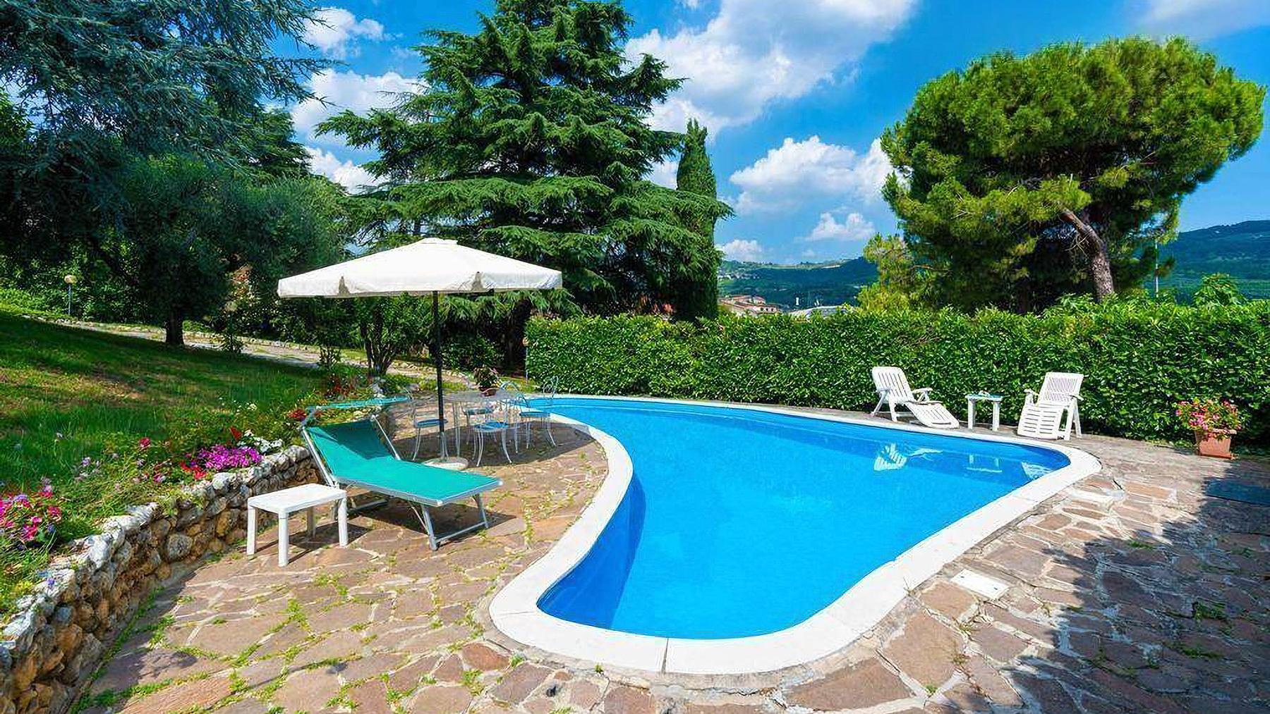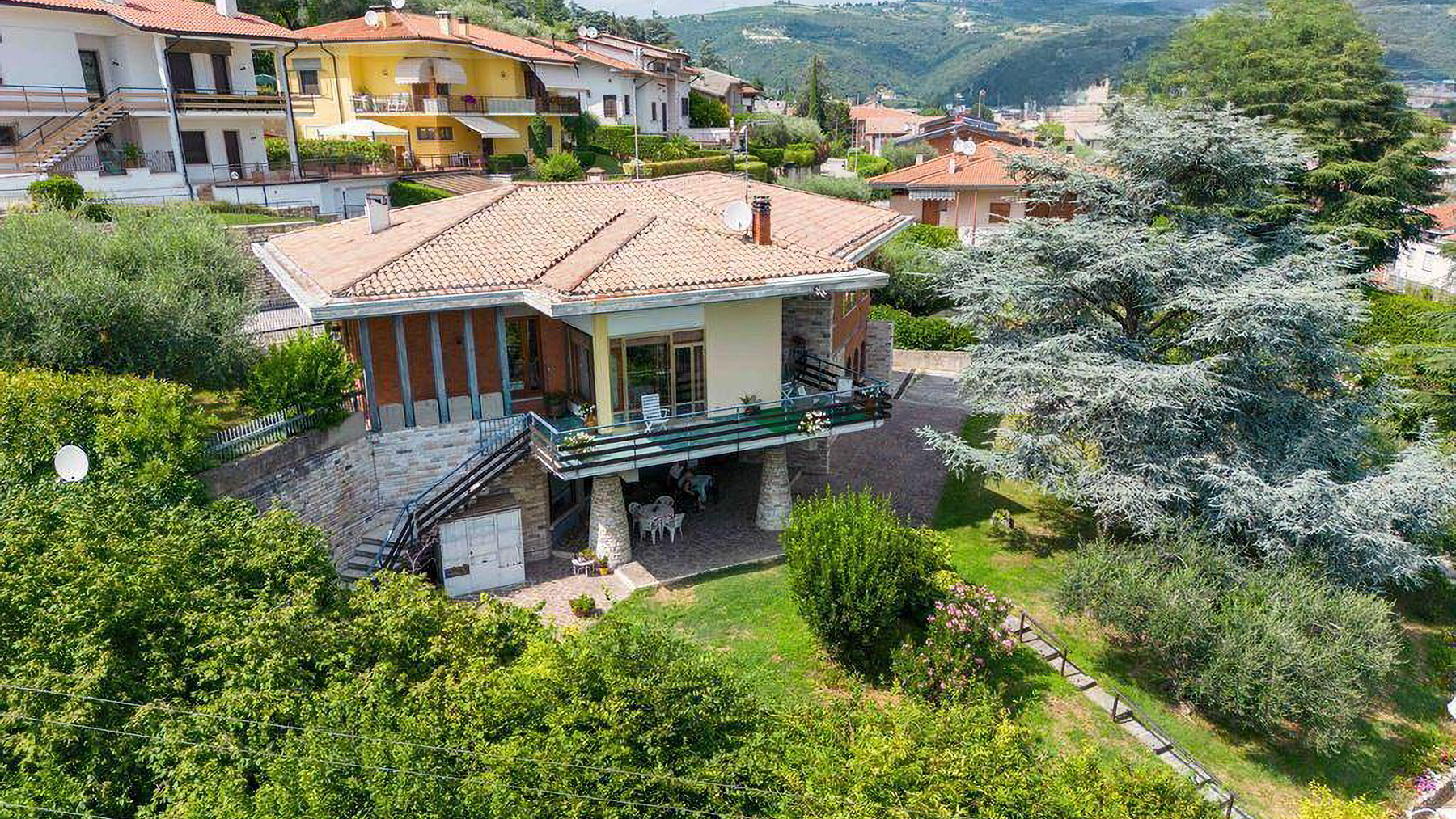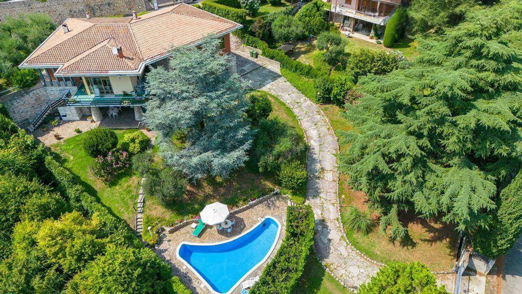 Immersa nel verde di una collina che abbraccia Grezzana, Verona, questa villa indipendente rappresenta un'oasi di serenità e eleganza. Qui, la natura si intreccia con l'abitare, creando un'atmosfera unica dove la luce del sole gioca tra le fronde degli alberi e il profumo della vegetazione avvolge ogni angolo della proprietà. La villa, di 359 mq, si sviluppa su due piani principali e offre dieci stanze ampie e luminose, quattro bagni moderni e rifiniti con dettagli di pregio come le piastrelle blu a motivi floreali. Gli spazi interni sono pensati per garantire il massimo comfort e la privacy, mentre all'esterno, un rigoglioso parco privato con alberi d’alto fusto circonda una scenografica piscina dalla forma sinuosa. Il tetto in tegole rosse e i mattoni a vista si integrano perfettamente con il paesaggio circostante, creando un dialogo armonioso tra architettura e natura. Vivere in questa villa significa godere di un lifestyle esclusivo e raffinato. Immagina di trascorrere le giornate estive a bordo piscina, cullato dal canto degli uccelli e dal fruscio delle foglie, o di organizzare cene sotto le stelle sulla terrazza, con la vista che si perde tra le colline e i cieli di Verona. Il giardino, curato con dedizione, è il luogo ideale per momenti di relax e convivialità, mentre l'ampio salone interno offre uno spazio accogliente per riunioni familiari e serate intime. Questa proprietà rappresenta un'opportunità irripetibile per chi cerca una dimora di prestigio che unisca eleganza senza tempo e comfort moderno. Un rifugio esclusivo dove spazio, natura e lusso si fondono in un equilibrio perfetto, nel cuore della campagna veronese.