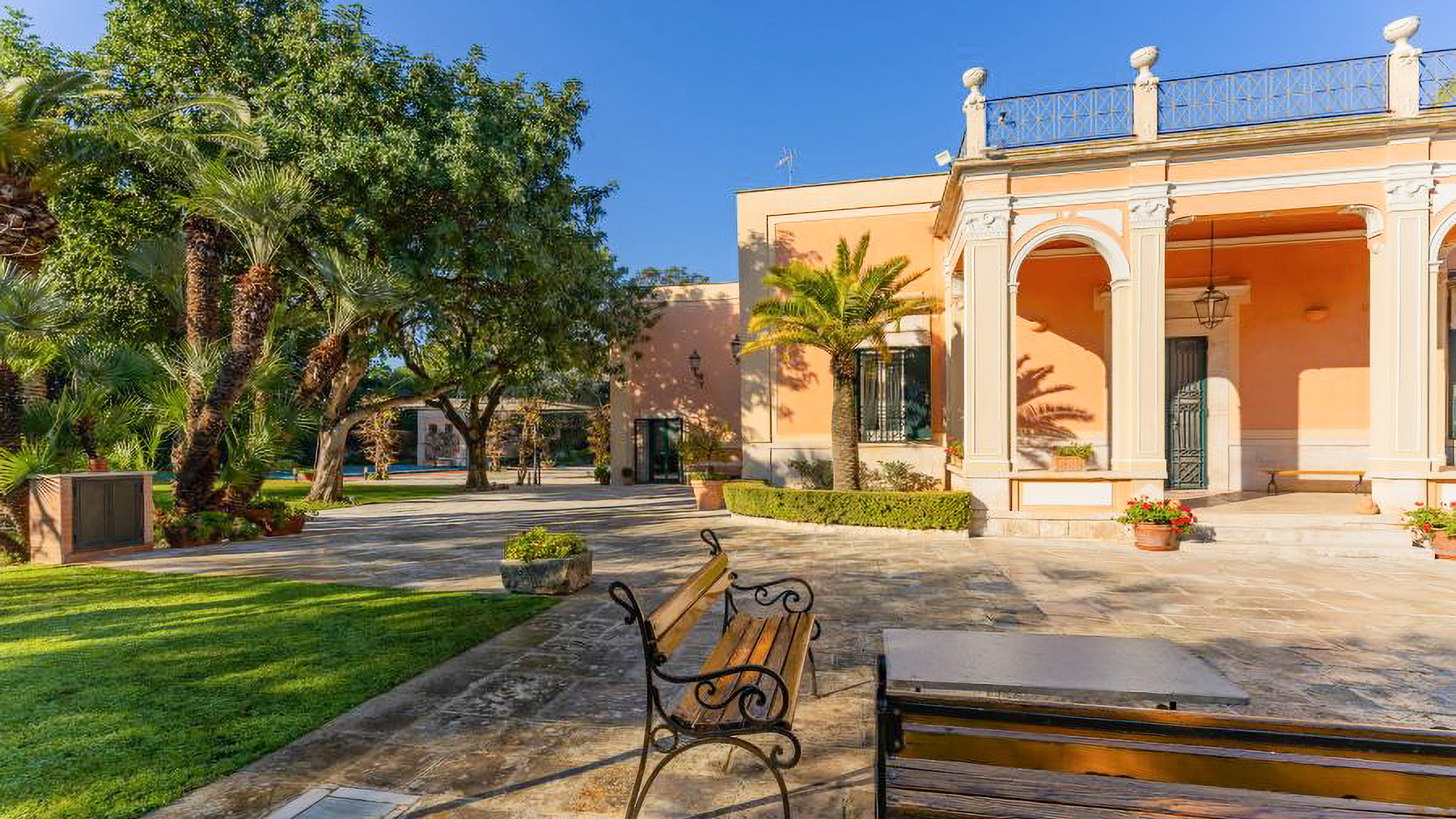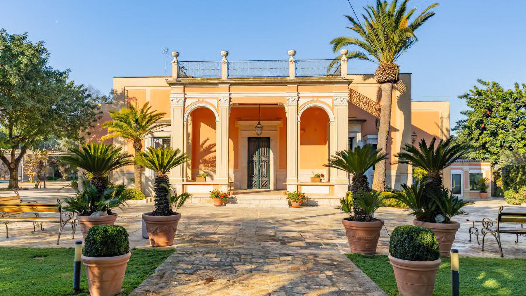 Immersa nel cuore vibrante di Molfetta, questa villa Liberty del tardo Ottocento si erge come un gioiello architettonico tra i profumi inebrianti degli agrumi e la luce dorata del sud che accarezza dolcemente la sua facciata color pesca. La proprietà, circondata da un giardino botanico di quasi 5000 m², è un'oasi di pace e bellezza naturale. Con una superficie di 439 m², la villa si sviluppa su due livelli, offrendo 13 stanze di pura eleganza. Gli interni sono un capolavoro di design, con affreschi originali, antiche basole e cotto dell'Impruneta che raccontano storie di un'epoca passata. Le tre camere da letto sono rifugi di lusso e tranquillità, mentre sei bagni rivestiti in marmo di Rosa Portogallo aggiungono un tocco di squisita raffinatezza. Completano la proprietà una cappella consacrata di 50 m² e una scenografica piscina di 72 m², perfettamente integrate nel paesaggio circostante. Vivere in questa villa significa abbracciare uno stile di vita esclusivo, fatto di serate estive trascorse nel giardino monumentale sotto un cielo stellato, o di momenti di relax a bordo piscina, avvolti dalla serenità del luogo. La brezza marina e i profumi della vegetazione mediterranea accompagnano ogni istante, rendendo ogni giorno un'esperienza unica. Questa proprietà non è semplicemente una villa: è un simbolo di prestigio e raffinatezza, un'opportunità irripetibile per chi desidera una residenza iconica dove storia, eleganza e paesaggio mediterraneo si fondono in perfetta armonia.