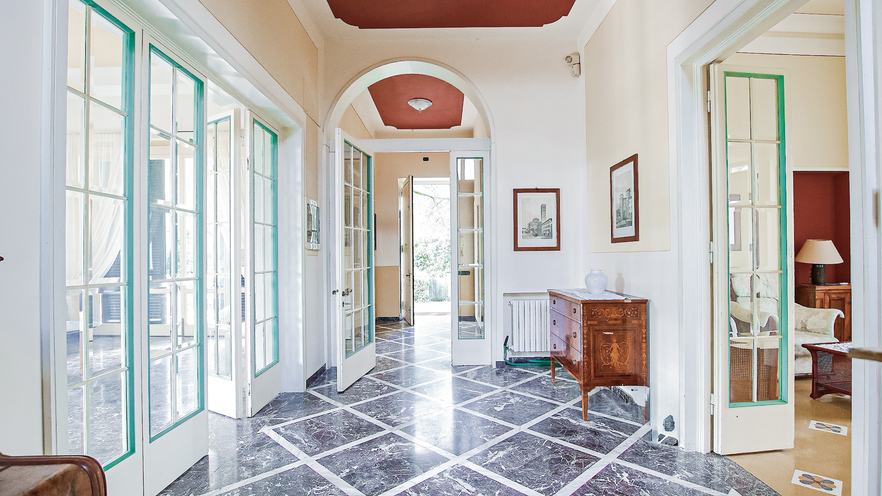 Avvolta dalla serenità delle colline lucchesi, questa magnifica villa Liberty dei primi del '900 offre un rifugio di eleganza e storia. Incastonata in un parco privato di 7.000 mq, la proprietà è un angolo di pace in cui i profumi della natura si fondono con la vista mozzafiato delle torri di Lucca, a breve distanza dal vibrante centro storico. Con una superficie di 460 mq, la villa si erge maestosa su tre piani, accogliendo gli ospiti con un salone doppio e un camino che promette momenti di autentico relax. Le cinque camere da letto, ognuna con il suo carattere unico, sono un nido di comfort e stile, mentre i quattro bagni assicurano il massimo della praticità. La caratteristica torretta panoramica è il cuore della dimora: da qui, il panorama si apre su un mondo di natura incontaminata. Vivere in questa villa significa abbracciare uno stile di vita raffinato e tranquillo. Immagina di sorseggiare un tè nel luminoso salottino, con la luce che danza sulle pareti color pesca, o di cenare all'aperto sulla terrazza panoramica, sotto un cielo stellato che racconta storie antiche. Il giardino, con la possibilità di costruire una piscina, è il luogo ideale per feste indimenticabili o per godersi momenti di assoluto relax. Questa residenza unica è un'opportunità rara di possedere un pezzo di storia, dove l'eleganza d'altri tempi si fonde con il comfort moderno, offrendo un'esperienza abitativa senza pari nel cuore della campagna lucchese.