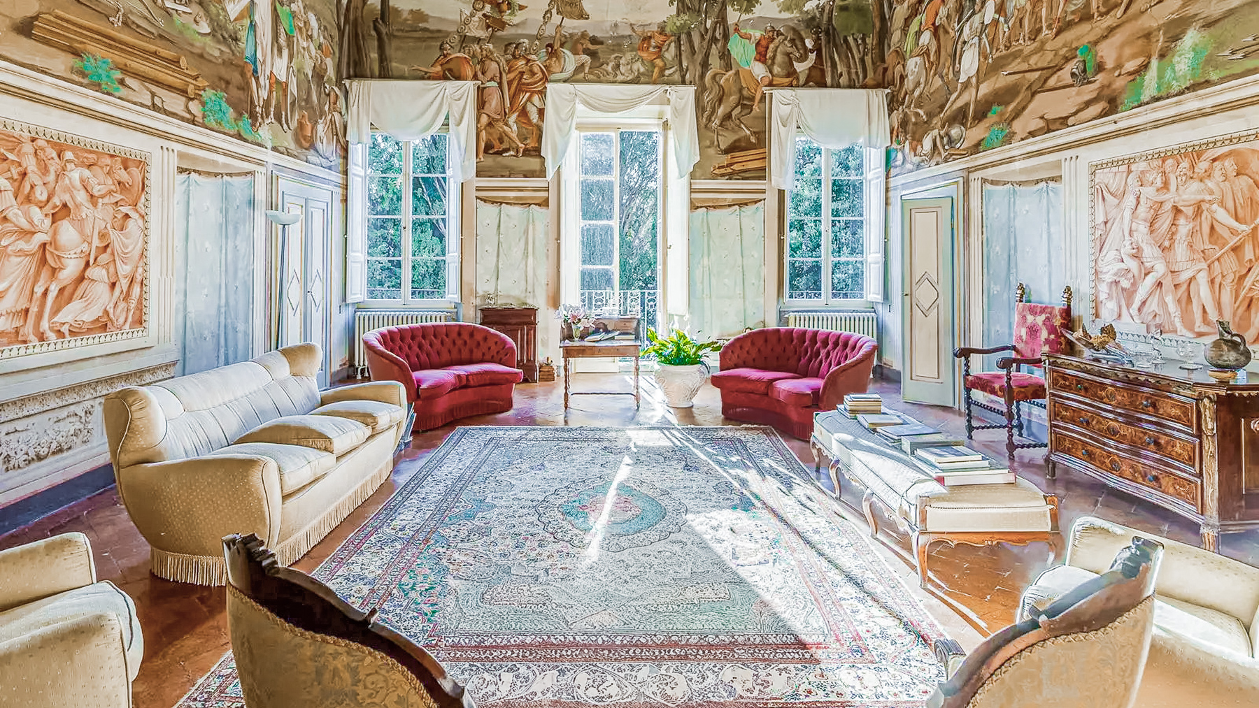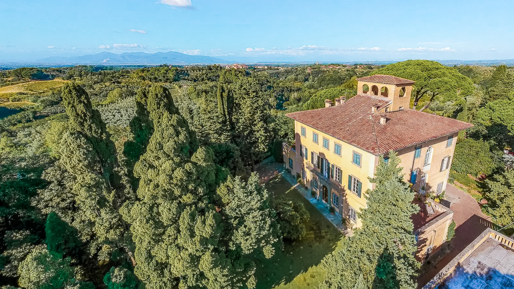 Immersa tra le dolci colline della campagna pisana, questa villa medicea a Casciana Terme Lari è un rifugio di pace e raffinatezza. Qui, il profumo dei cipressi si mescola al canto degli uccelli, creando un'atmosfera senza tempo, dove ogni dettaglio racconta una storia di eleganza e prestigio. La luce del sole filtra attraverso le grandi finestre, illuminando affreschi e arredi che evocano un passato glorioso. Con una superficie di 1371 mq distribuita su tre livelli, la villa offre 43 stanze finemente decorate, tra cui 10 bagni, saloni affrescati e una torre panoramica con vista mozzafiato a 360 gradi sulla campagna circostante. Il parco privato di quasi un ettaro è un'oasi di tranquillità, con giardini curati e terrazze che invitano a godere del dolce vivere in campagna. L'eleganza classica degli interni, con arredi vintage e dettagli decorativi ricercati, completa il fascino di questa residenza unica. Immagina di iniziare la giornata con una passeggiata tra i giardini, seguita da momenti di relax nella cappella privata o da cene eleganti nella grande cucina con focolare. La terrazza panoramica diventa il palcoscenico ideale per serate romantiche sotto il cielo stellato, mentre la vista si estende fino all'orizzonte, offrendo un'esperienza sensoriale senza pari. Questa villa medicea rappresenta il perfetto equilibrio tra storia, arte e modernità. Un'opportunità irripetibile nel mercato immobiliare di prestigio, incarnando il lusso e l'esclusività della Toscana.