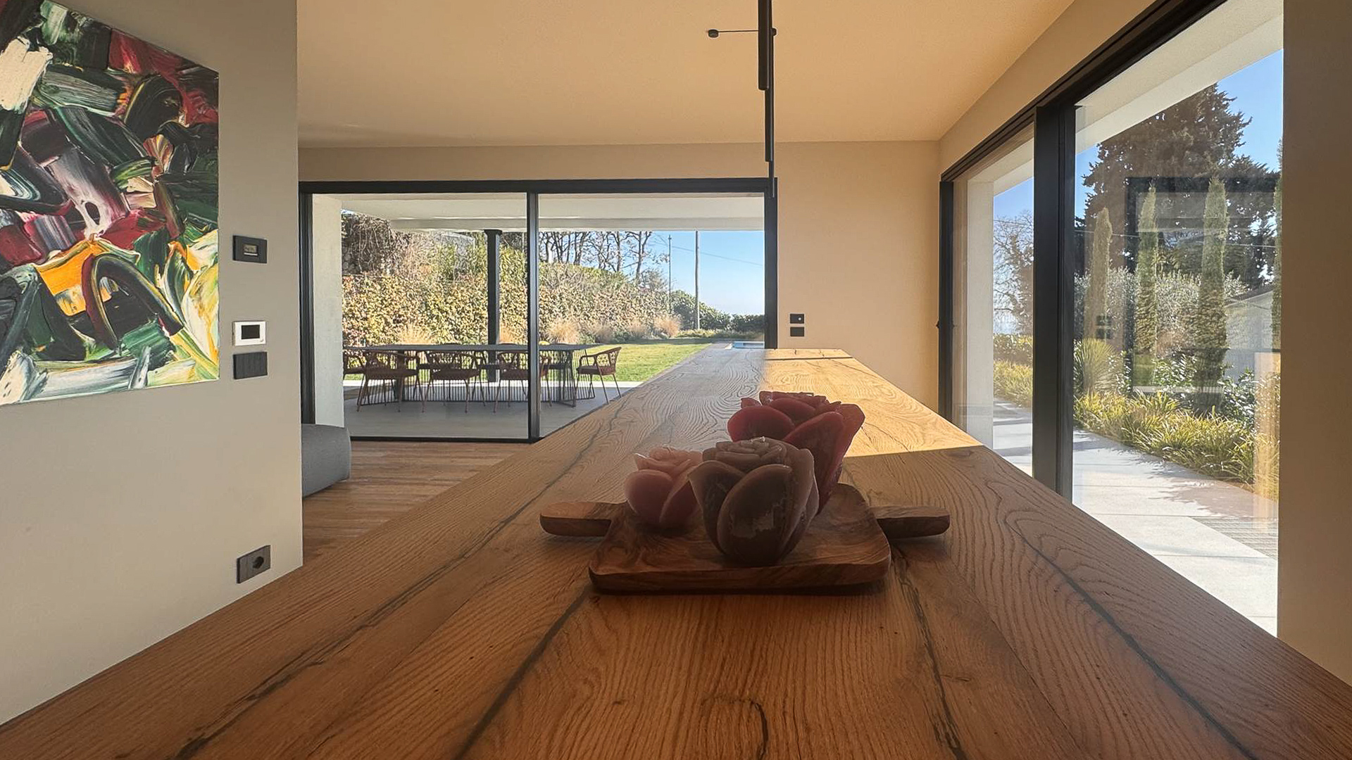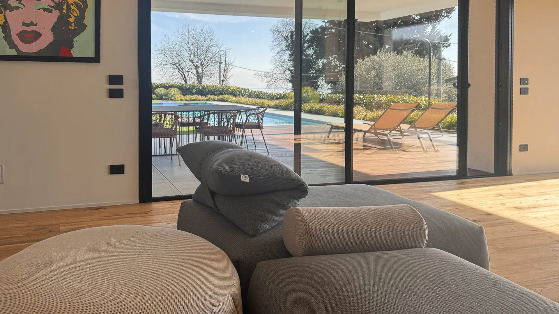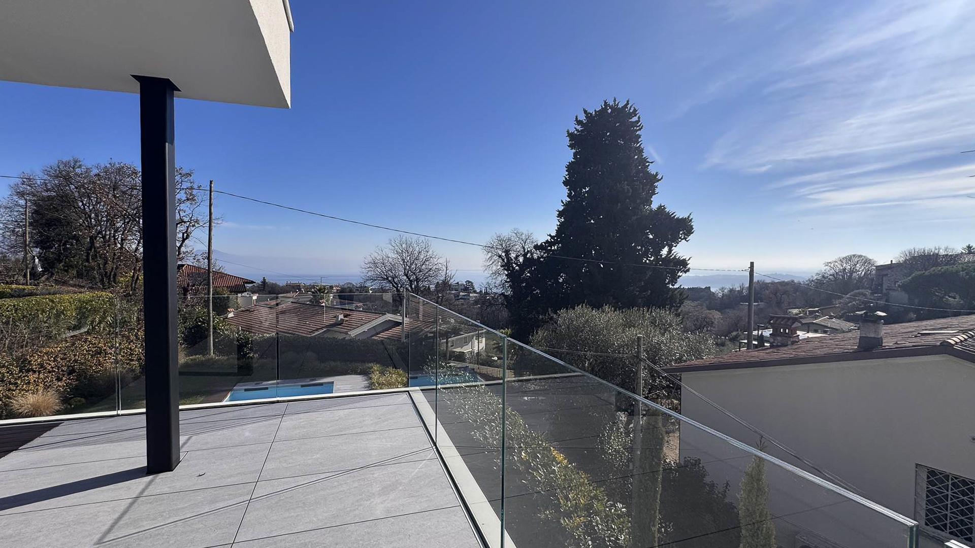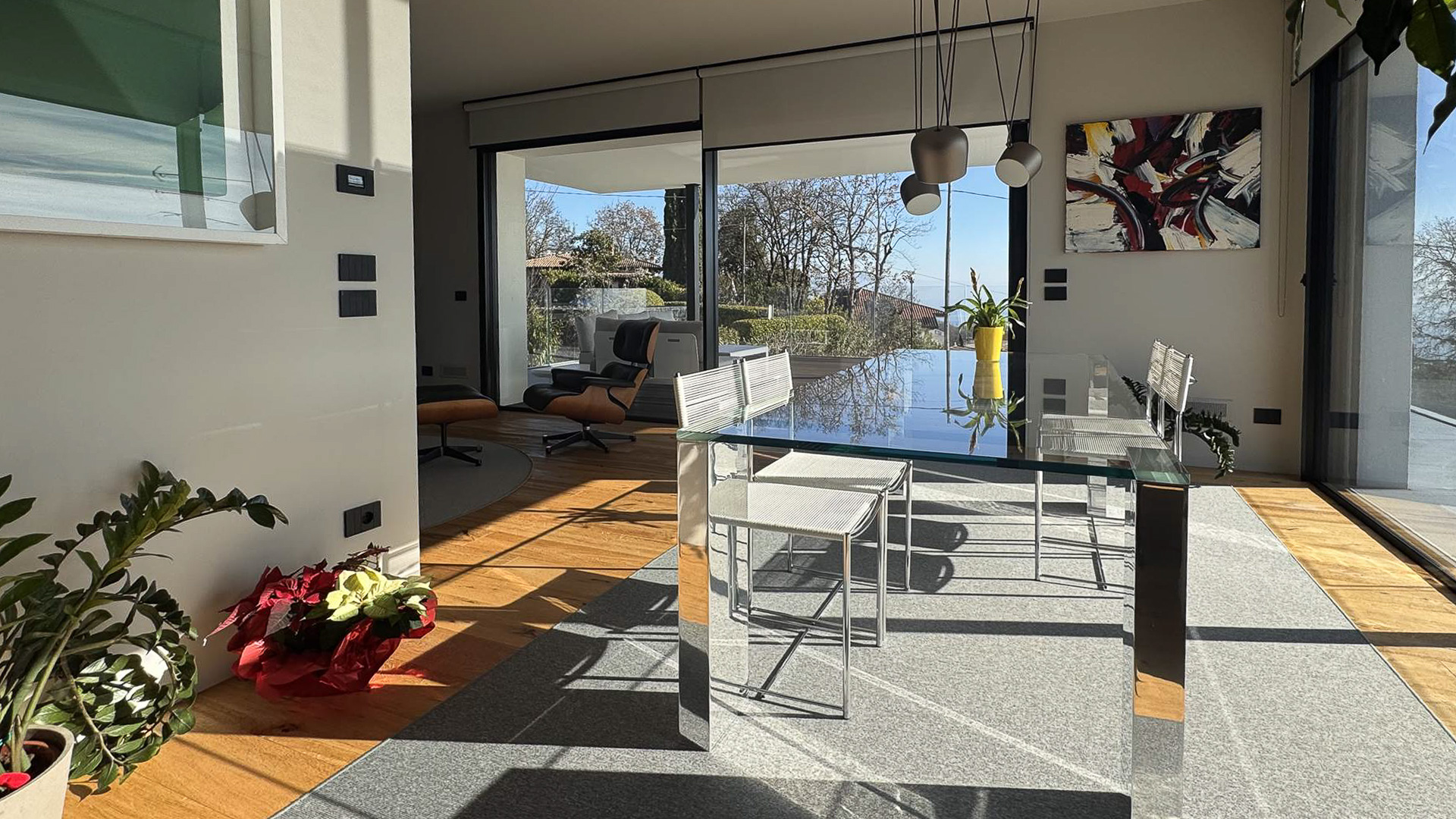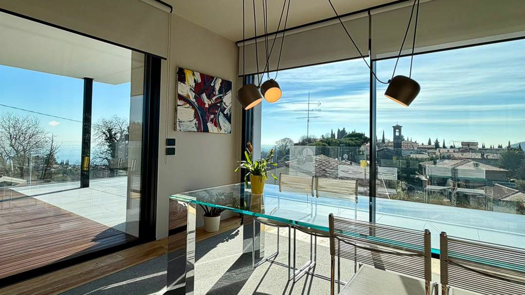 Abbracciata dalla dolcezza delle colline di Padenghe sul Garda, questa villa contemporanea rappresenta un rifugio di lusso e pace. Qui, il canto degli uccelli si mescola al fruscio delle foglie, mentre una vista mozzafiato sul lago si svela attraverso ampie vetrate, creando un ambiente di rara bellezza e serenità. La proprietà si estende su un lotto di circa 2.000 mq, offrendo 306 mq di eleganza abitativa distribuiti su tre livelli. Con 10 stanze e 4 bagni, la villa è pensata per chi cerca spazi generosi e funzionalità impeccabile. Il design architettonico moderno si manifesta in dettagli come le grandi superfici vetrate, le terrazze panoramiche e le finiture di altissimo livello. Il giardino pianeggiante, con la sua piscina lineare e il solarium in legno, è un invito al relax, mentre la classe energetica A4, l'impianto fotovoltaico e il riscaldamento a pavimento garantiscono un'efficienza energetica senza compromessi. La vita in questa villa è un'esperienza sensoriale continua. Immagina lunghe serate estive trascorse con amici e familiari sotto il portico coperto, godendo della totale privacy offerta dalla proprietà. Oppure, inizia la giornata con una nuotata nella piscina che si fonde armoniosamente con l'architettura della villa, seguita da una colazione sulla terrazza con vista lago, dove la luce mattutina accarezza dolcemente il paesaggio. Questa villa è molto più di una semplice abitazione