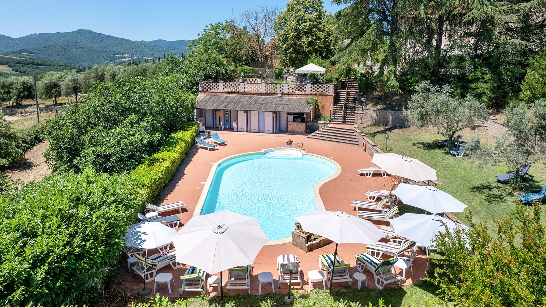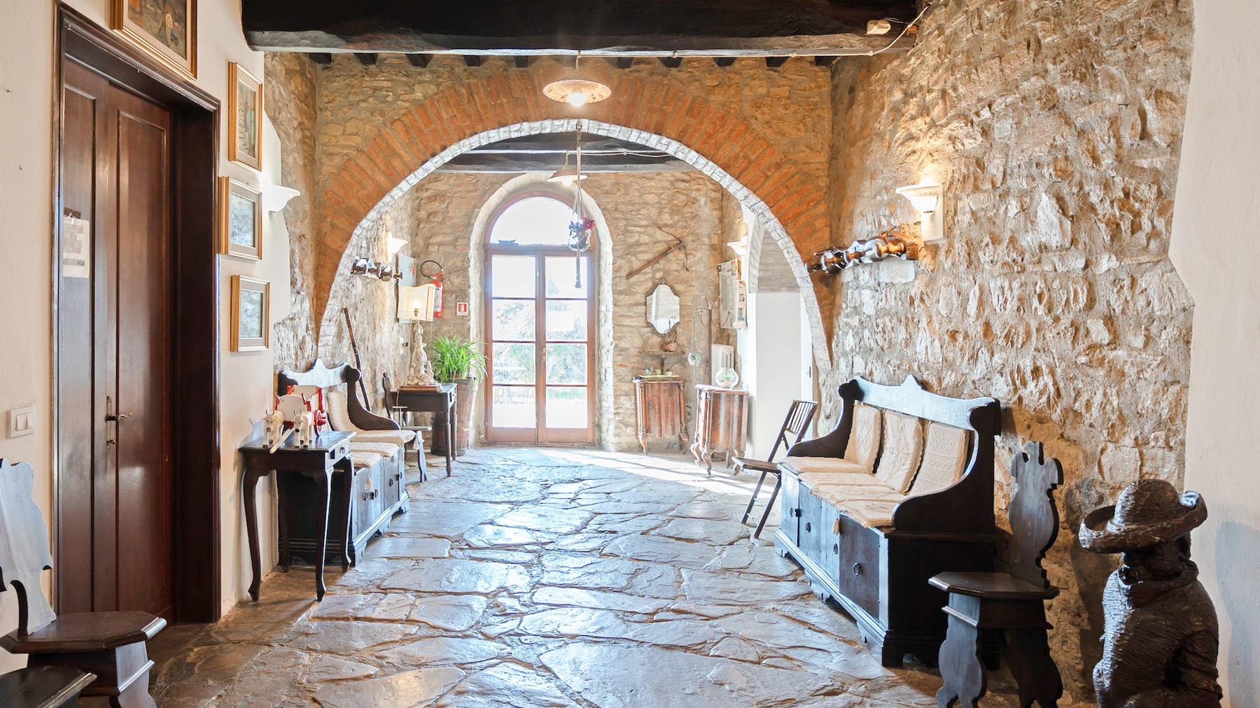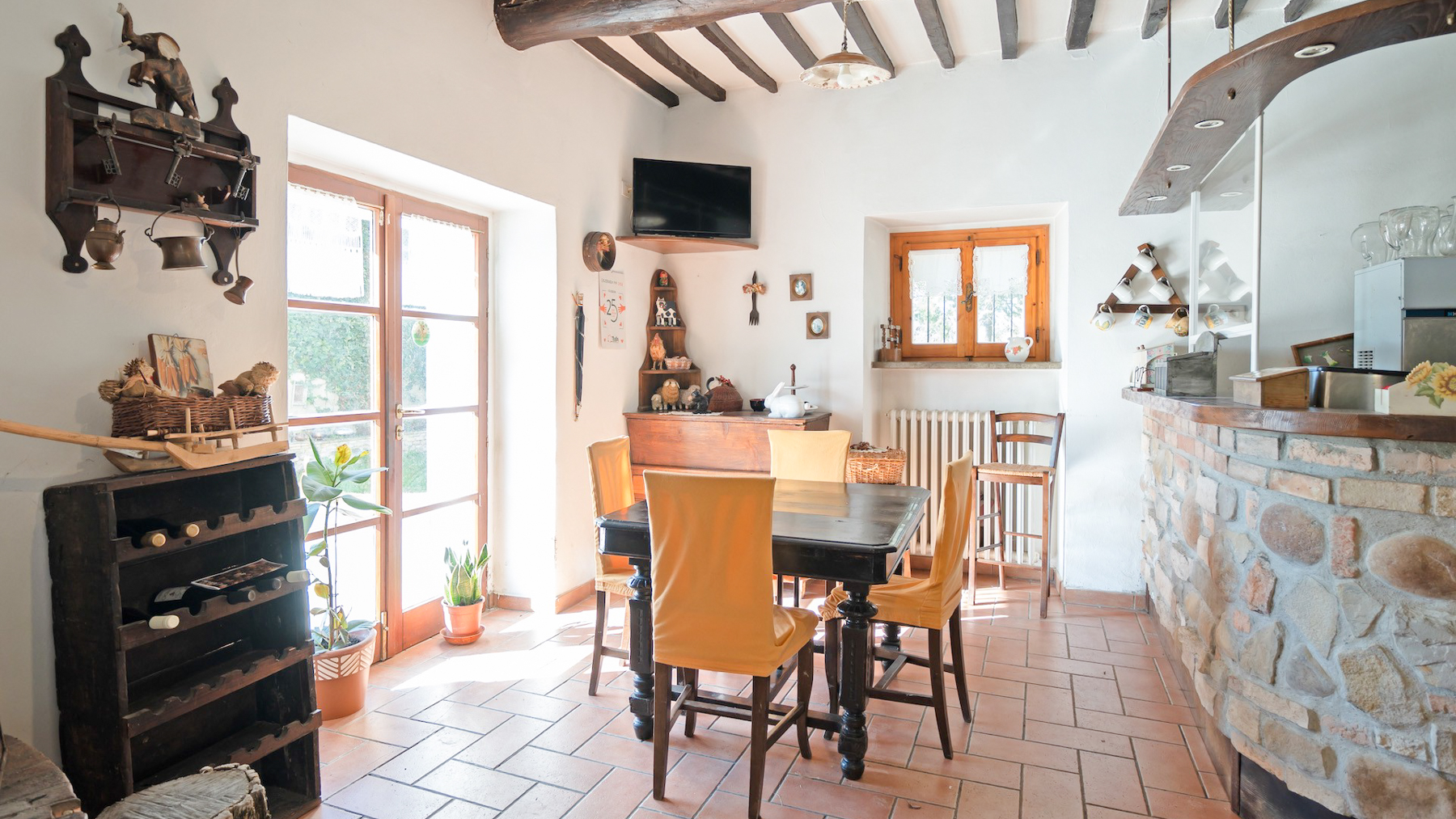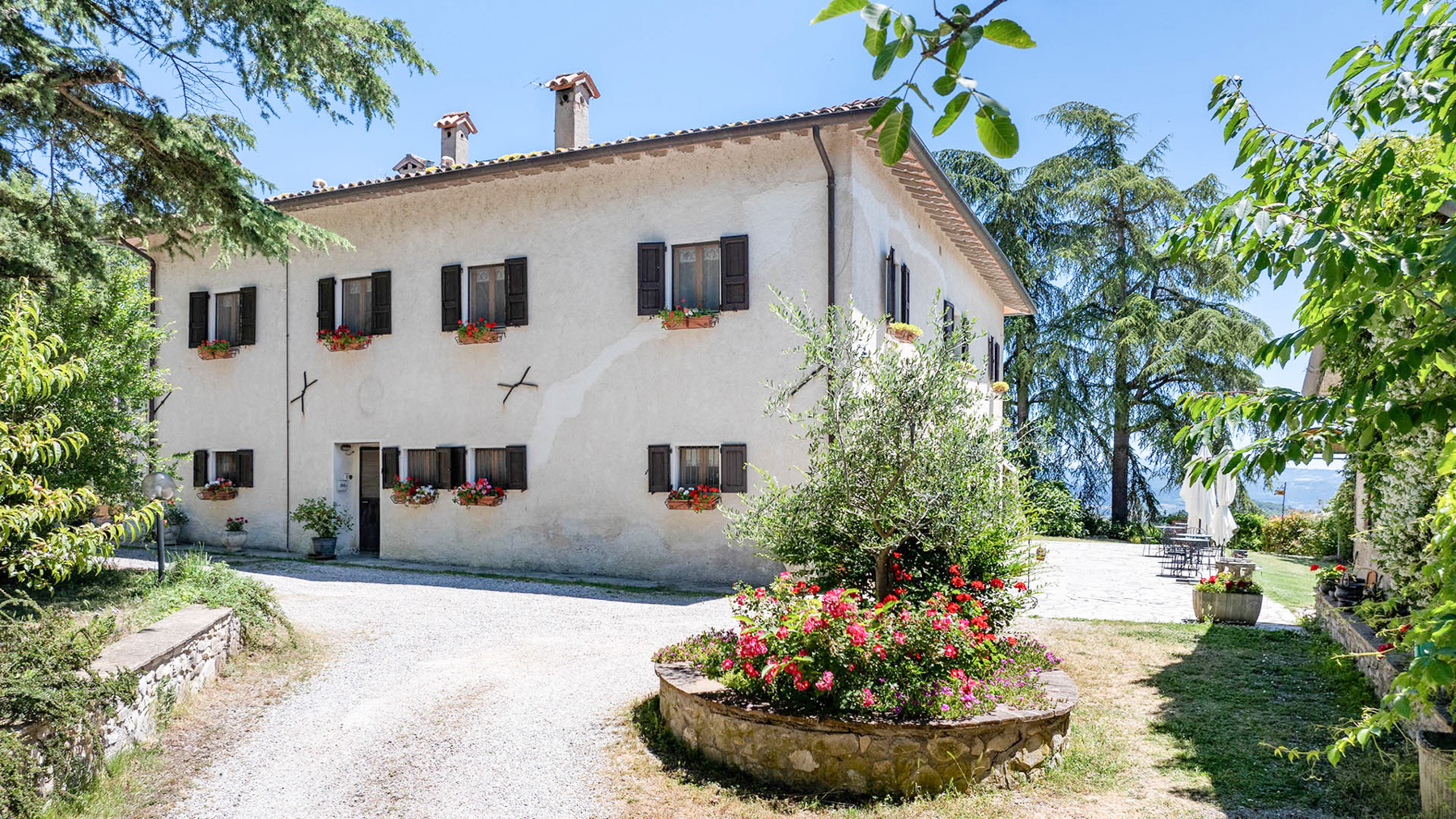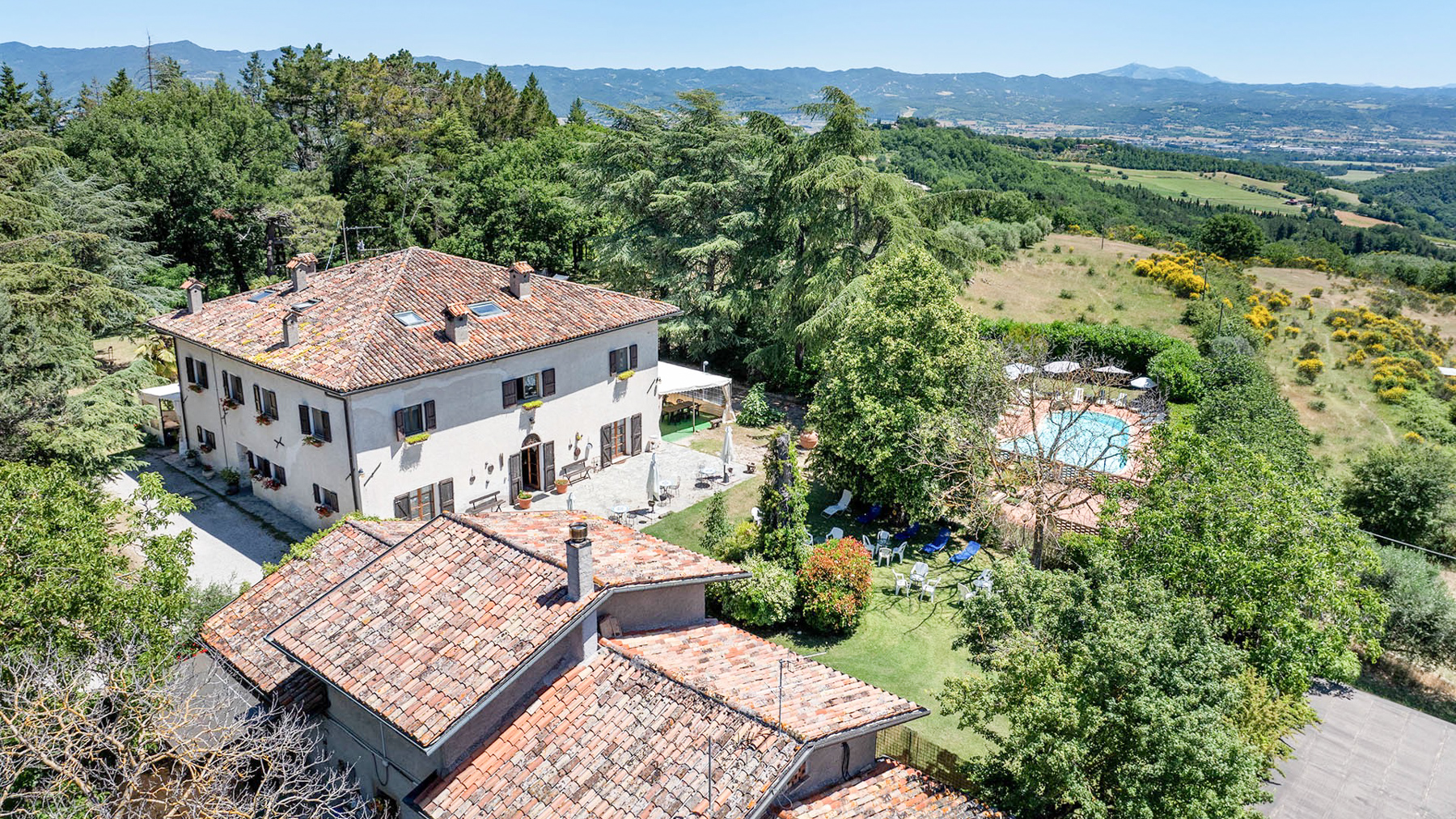 Incastonata tra le dolci colline umbre, al confine con la Toscana, questa magnifica proprietà offre un rifugio di pace e bellezza. Qui, il sole sorge dipingendo il cielo di colori caldi e tramonta regalando spettacoli mozzafiato, mentre l'aria fresca porta il profumo della natura circostante. Un angolo di paradiso dove ogni giorno inizia con una vista incantevole sui colli che abbracciano la casa. La proprietà si estende per 750 mq e comprende un casale principale in pietra e una dependance, per un totale di 15 stanze e 10 bagni. Al piano terra, spazi accoglienti e autentici raccontano la storia di un tempo passato, con pavimenti e pareti originali del 1850 e un grande forno a legna. Al primo piano, le cinque camere da letto con bagno en suite offrono comfort e riservatezza. Il piano mansardato accoglie i pellegrini con stanze multiple e una cucina dedicata. La dependance ospita un appartamento indipendente, perfetto per ricevere ospiti o per una famiglia numerosa. All'esterno, la piscina di acqua salata si affaccia su un panorama senza eguali, circondata da un giardino di 5000 mq e da 6,5 ettari di terreno tra seminativo, vigna e olivi, dove cavalli pascolano liberi. Vivere qui significa abbracciare uno stile di vita autentico, dove il tempo sembra rallentare. Immagina di passeggiare tra i campi al tramonto, di organizzare cene sotto un cielo stellato nel giardino fiorito, o di rilassarti a bordo piscina nelle calde giornate estive, avvolto da un panorama che nutre l'anima. Questa proprietà unica nel suo genere rappresenta un'opportunità irripetibile per chi cerca l'equilibrio perfetto tra eleganza senza tempo e comfort moderno, un gioiello raro nel cuore della campagna umbra.