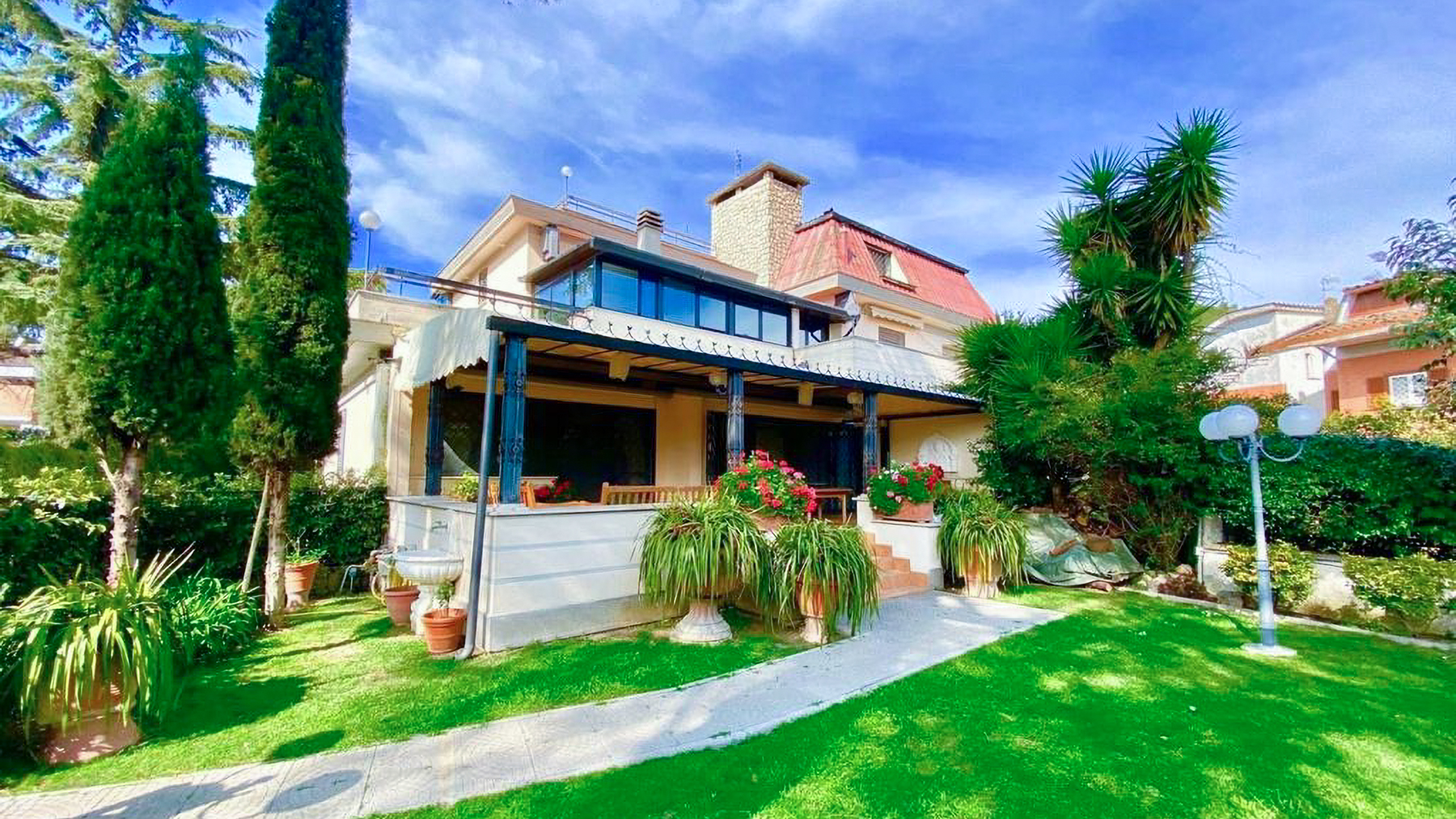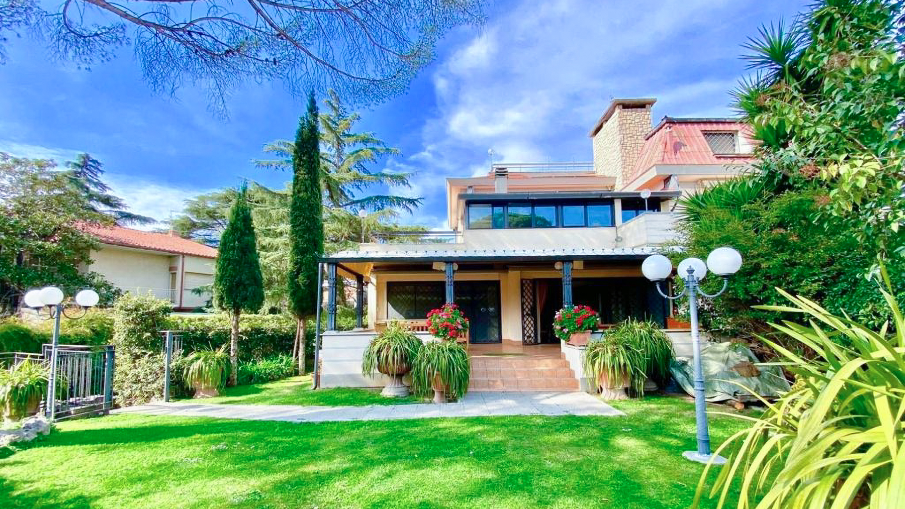 Incastonata nel cuore del prestigioso quartiere Roma EUR Tre Pini Villaggio Azzurro, questa villa affascinante si erge come un rifugio di lusso e serenità. Circondata da un rigoglioso giardino, è un luogo dove il canto degli uccelli si fonde con il profumo dei fiori, creando un'armonia perfetta. La luce naturale filtra attraverso ampie finestre, accarezzando ogni angolo con calore e bellezza. La villa si estende su una superficie di 613 mq distribuiti su tre livelli, collegati da una scala interna e un ascensore privato. Con cinque camere spaziose e tre eleganti bagni, la residenza è progettata per chi desidera un lifestyle senza compromessi. Le finiture di pregio, come i pavimenti in parquet e le ceramiche raffinate, si uniscono a dettagli su misura che esaltano l'eleganza dell'immobile. Gli spazi esterni offrono un giardino incantevole, una piscina privata e terrazze panoramiche ideali per momenti di relax e convivialità. Vivere in questa villa significa abbracciare un'esperienza di vita esclusiva. Immagina di iniziare la giornata con una nuotata nella piscina privata, per poi goderti un caffè sulla terrazza, osservando il sole che sorge all'orizzonte. La sera, la sala da pranzo elegante diventa il palcoscenico perfetto per cene memorabili, mentre il bagno in marmo offre un'oasi di tranquillità per rilassarsi. Questa villa rappresenta un'opportunità irripetibile per chi cerca il perfetto connubio tra eleganza senza tempo e modernità. Un vero gioiello nel panorama immobiliare di lusso, destinato a chi sa apprezzare l'eccellenza in ogni suo dettaglio.