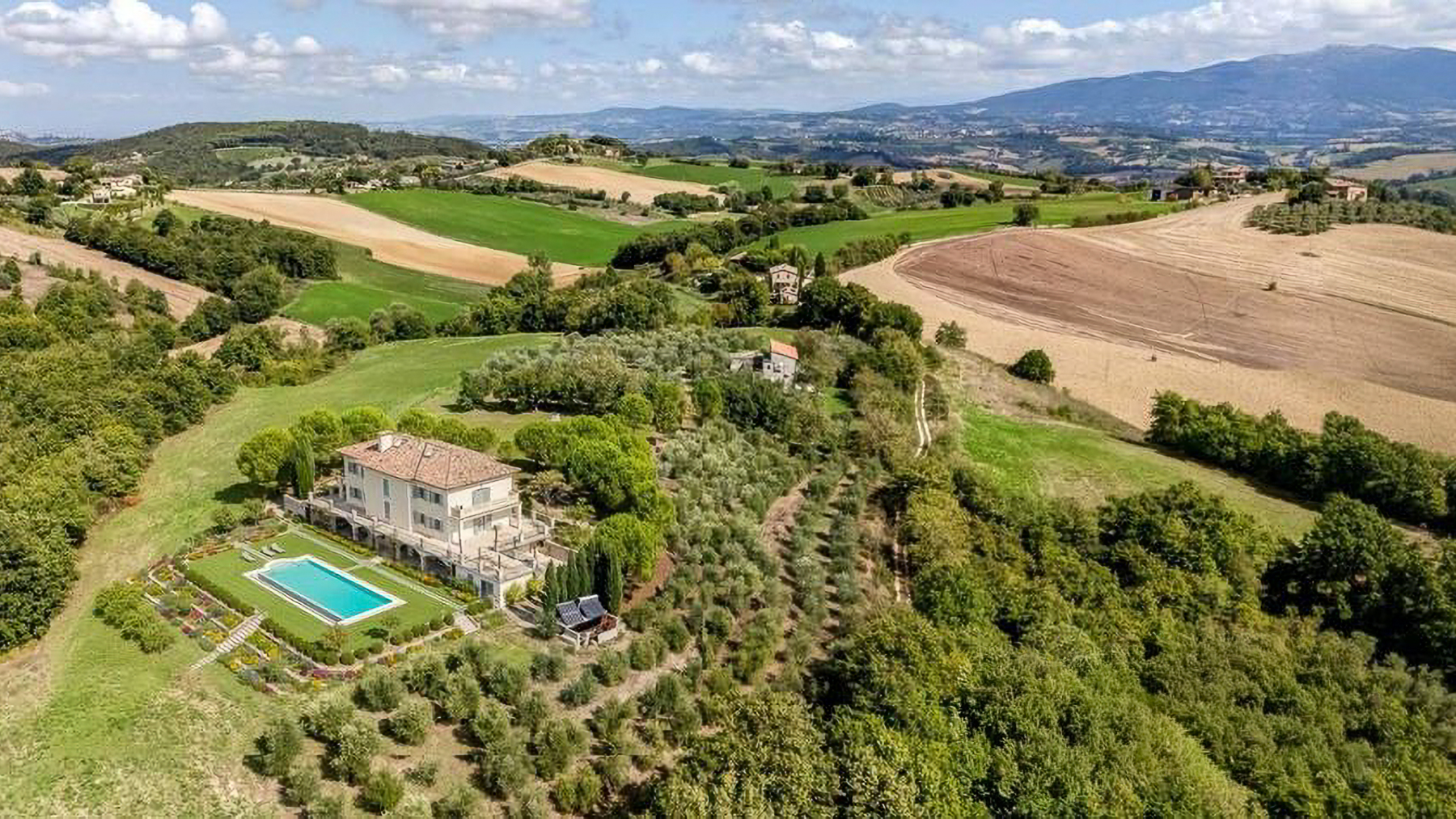 Immersa tra le dolci colline umbre, Villa Altura è un'oasi di lusso e serenità, dove la natura abbraccia l'architettura in un connubio perfetto. Il fruscio delle foglie e i profumi della campagna accolgono chi varca la soglia di questa magnifica dimora, a pochi minuti dal fascino storico di Todi e Avigliano Umbro. La proprietà si estende su 1113 mq, suddivisi tra la villa principale e la casa del custode, entrambe caratterizzate da un'eleganza senza tempo. Con 14 camere spaziose e 9 bagni, questa residenza offre ambienti ampi e luminosi, impreziositi da dettagli architettonici di pregio. Il cuore pulsante della villa è rappresentato da saloni con pavimenti in marmo, soffitti decorativi in legno e un camino in pietra che invita al relax. La casa del custode, con i suoi ampi spazi, può essere trasformata in una dependance accogliente. La proprietà è completata da un terrazzo che offre una vista mozzafiato sulla campagna ternana. Vivere a Villa Altura significa abbracciare uno stile di vita esclusivo, dove ogni giornata è un'opportunità per godersi la bellezza della natura circostante. Immagina di sorseggiare un calice di vino sulla terrazza al tramonto, o di passeggiare tra gli uliveti che adornano il terreno di oltre 13 ettari. Ogni angolo invita alla contemplazione e al piacere. Questa villa rappresenta il perfetto equilibrio tra eleganza classica e comfort moderno, un'opportunità unica nel panorama immobiliare di lusso. Un luogo dove i sogni di vita raffinata diventano realtà.