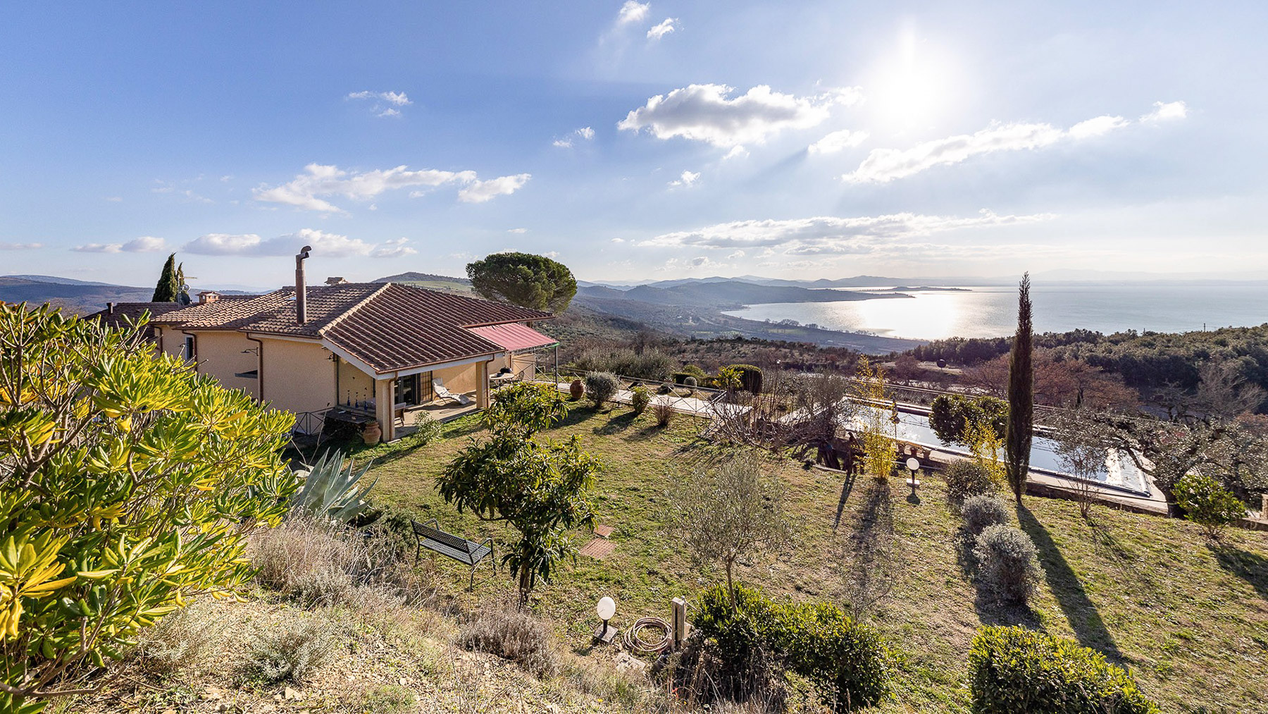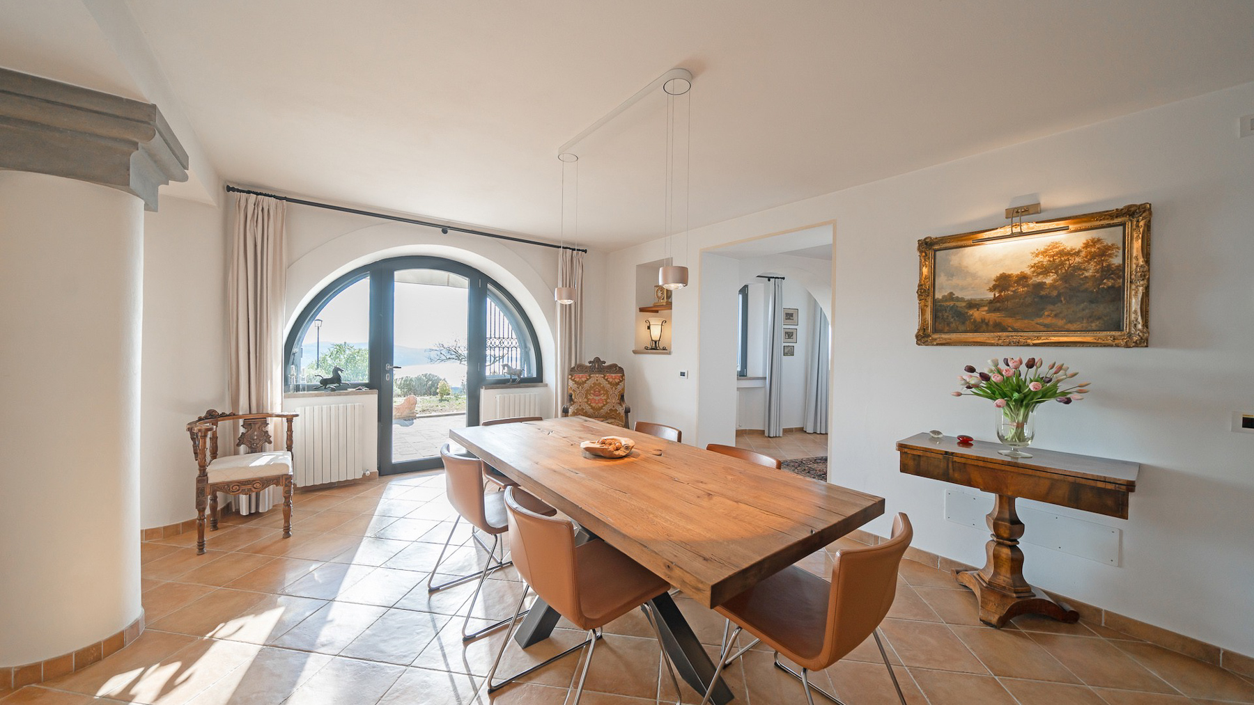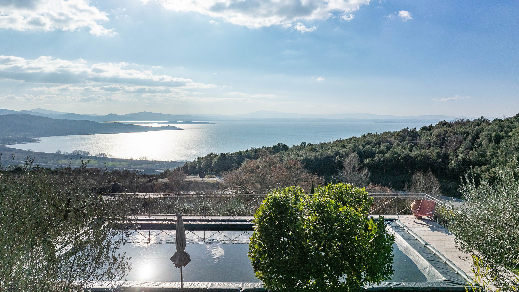 Adagiata sulle incantevoli colline che abbracciano il Lago Trasimeno, questa villa è un rifugio di pace e lusso. L'alba illumina la proprietà con una luce dorata, mentre il canto degli uccelli e la brezza leggera tra gli ulivi creano un'atmosfera di pura serenità. Qui, la natura e la raffinatezza si fondono in un abbraccio perfetto. La villa, di 344 mq, offre spazi generosi e finiture di pregio. È suddivisa in due unità immobiliari: la residenza principale di 265 mq, con un ampio soggiorno doppio e cucina affacciata sul lago, una grande camera al piano terra con due bagni, e al primo piano tre camere da letto, tre bagni e un soggiorno con camino. Il secondo appartamento di 70 mq dispone di un soggiorno/cucina e bagno al piano terra, e due camere vista lago e bagno al primo piano. La proprietà vanta un giardino curato, una piscina panoramica di 6x12 m e un terreno di 16.000 mq con 150 ulivi, il tutto a Passignano sul Trasimeno, in provincia di Perugia. Vivere qui significa godere di tramonti mozzafiato sul lago, con cene estive a bordo piscina e passeggiate tra gli ulivi al chiaro di luna. È un luogo dove ogni giorno si trasforma in una vacanza, e il tempo sembra scorrere con una dolcezza unica. Questa villa rappresenta un'opportunità irripetibile per chi cerca l'equilibrio perfetto tra eleganza senza tempo e comfort moderno, in uno dei luoghi più affascinanti dell'Umbria. Non lasciarti sfuggire questa esclusiva gemma nel cuore della campagna italiana.