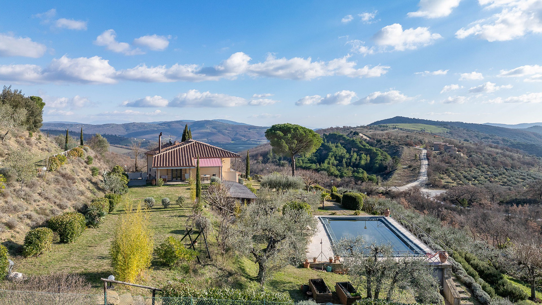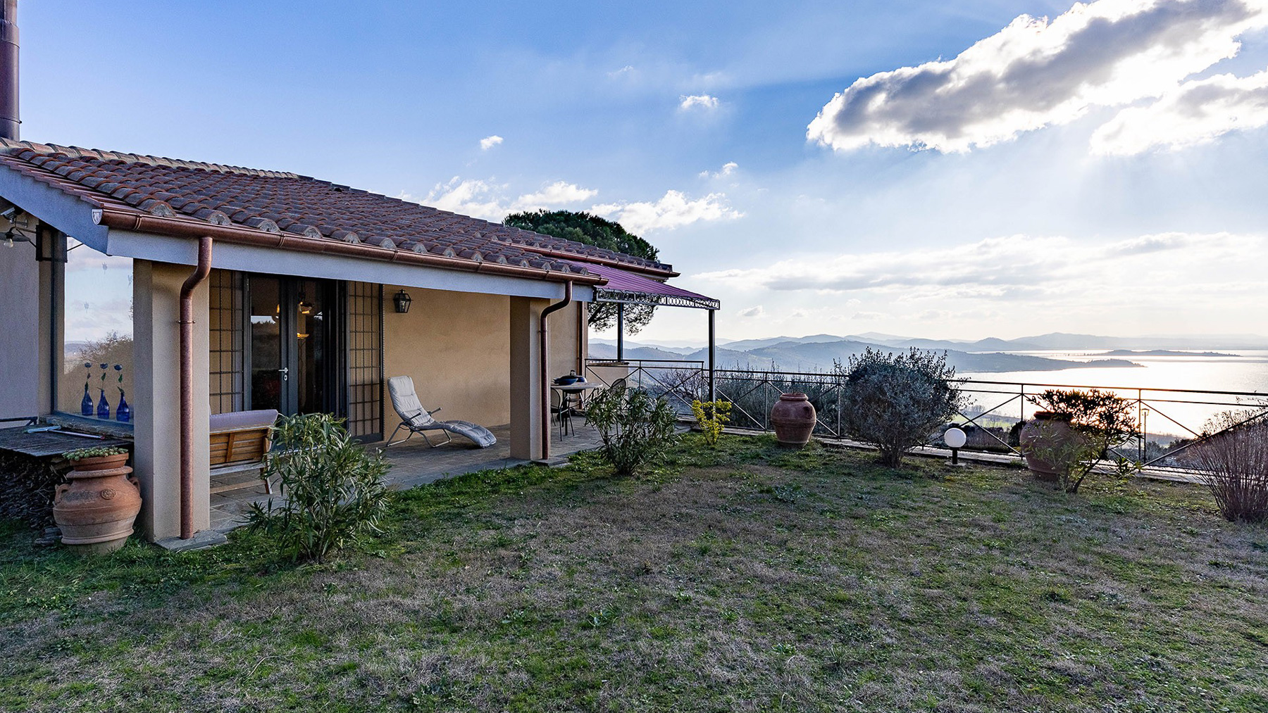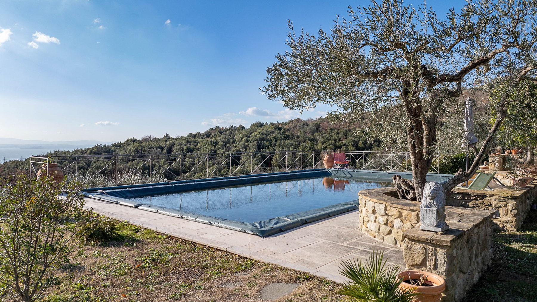 Adagiata sulle incantevoli colline che abbracciano il Lago Trasimeno, questa villa è un rifugio di pace e lusso. L'alba illumina la proprietà con una luce dorata, mentre il canto degli uccelli e la brezza leggera tra gli ulivi creano un'atmosfera di pura serenità. Qui, la natura e la raffinatezza si fondono in un abbraccio perfetto. La villa, di 344 mq, offre spazi generosi e finiture di pregio. È suddivisa in due unità immobiliari: la residenza principale di 265 mq, con un ampio soggiorno doppio e cucina affacciata sul lago, una grande camera al piano terra con due bagni, e al primo piano tre camere da letto, tre bagni e un soggiorno con camino. Il secondo appartamento di 70 mq dispone di un soggiorno/cucina e bagno al piano terra, e due camere vista lago e bagno al primo piano. La proprietà vanta un giardino curato, una piscina panoramica di 6x12 m e un terreno di 16.000 mq con 150 ulivi, il tutto a Passignano sul Trasimeno, in provincia di Perugia. Vivere qui significa godere di tramonti mozzafiato sul lago, con cene estive a bordo piscina e passeggiate tra gli ulivi al chiaro di luna. È un luogo dove ogni giorno si trasforma in una vacanza, e il tempo sembra scorrere con una dolcezza unica. Questa villa rappresenta un'opportunità irripetibile per chi cerca l'equilibrio perfetto tra eleganza senza tempo e comfort moderno, in uno dei luoghi più affascinanti dell'Umbria. Non lasciarti sfuggire questa esclusiva gemma nel cuore della campagna italiana.