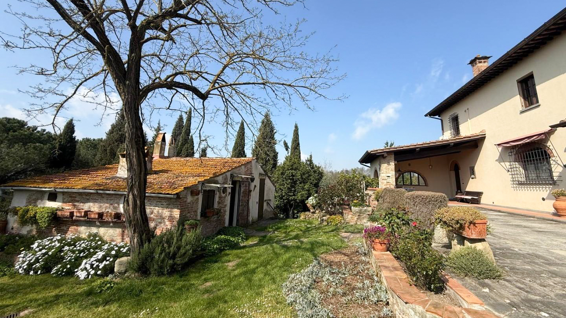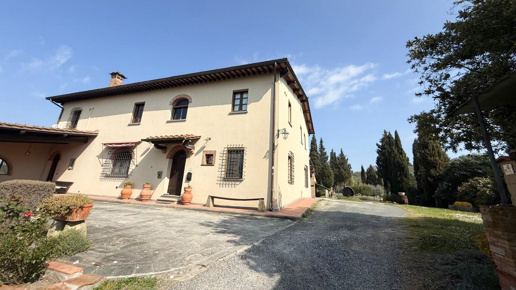 Incastonata tra le dolci colline della Toscana, Tenuta Paradiso è un rifugio di serenità e bellezza senza tempo. Qui, la luce del sole danza tra le foglie degli alberi e il canto degli uccelli accompagna ogni tuo passo, mentre il profumo dei cipressi e dei fiori selvatici avvolge l'aria con un inconfondibile aroma di pace. Questa straordinaria proprietà di circa 800 mq si trova nel cuore di Cerreto Guidi, Firenze, e rappresenta l'essenza della vita in campagna. Comprende una casa colonica su due livelli, due fienili e una graziosa dependance, il tutto immerso in oltre 3 ettari di terreno. La casa principale, suddivisa in due unità ma facilmente riunificabile, offre complessivamente 10 stanze e 4 bagni. Gli interni accoglienti si caratterizzano per un soggiorno con camino, cucine abitabili, eleganti aree living e camere da letto spaziose. La terrazza panoramica e il portico regalano scorci indimenticabili sulla campagna circostante, mentre i fienili, da ristrutturare, aggiungono ulteriore fascino e potenziale a questa proprietà unica. Vivere a Tenuta Paradiso è un'esperienza che coinvolge tutti i sensi. Immagina di sorseggiare un bicchiere di Chianti nel tuo giardino privato mentre il sole tramonta dietro le colline, o di organizzare cene sotto le stelle sulla terrazza con vista mozzafiato. Ogni giornata qui inizia con la calma di un paesaggio da cartolina e si conclude con il comfort di una casa che racconta storie di eleganza e tradizione. Questa tenuta rappresenta una rara opportunità per possedere un angolo di paradiso nel cuore della Toscana. Un rifugio esclusivo dove il tempo sembra sospeso e ogni dettaglio è curato con amore e raffinatezza. Un vero gioiello nel mercato immobiliare di lusso, che unisce eleganza senza tempo e comfort moderno.