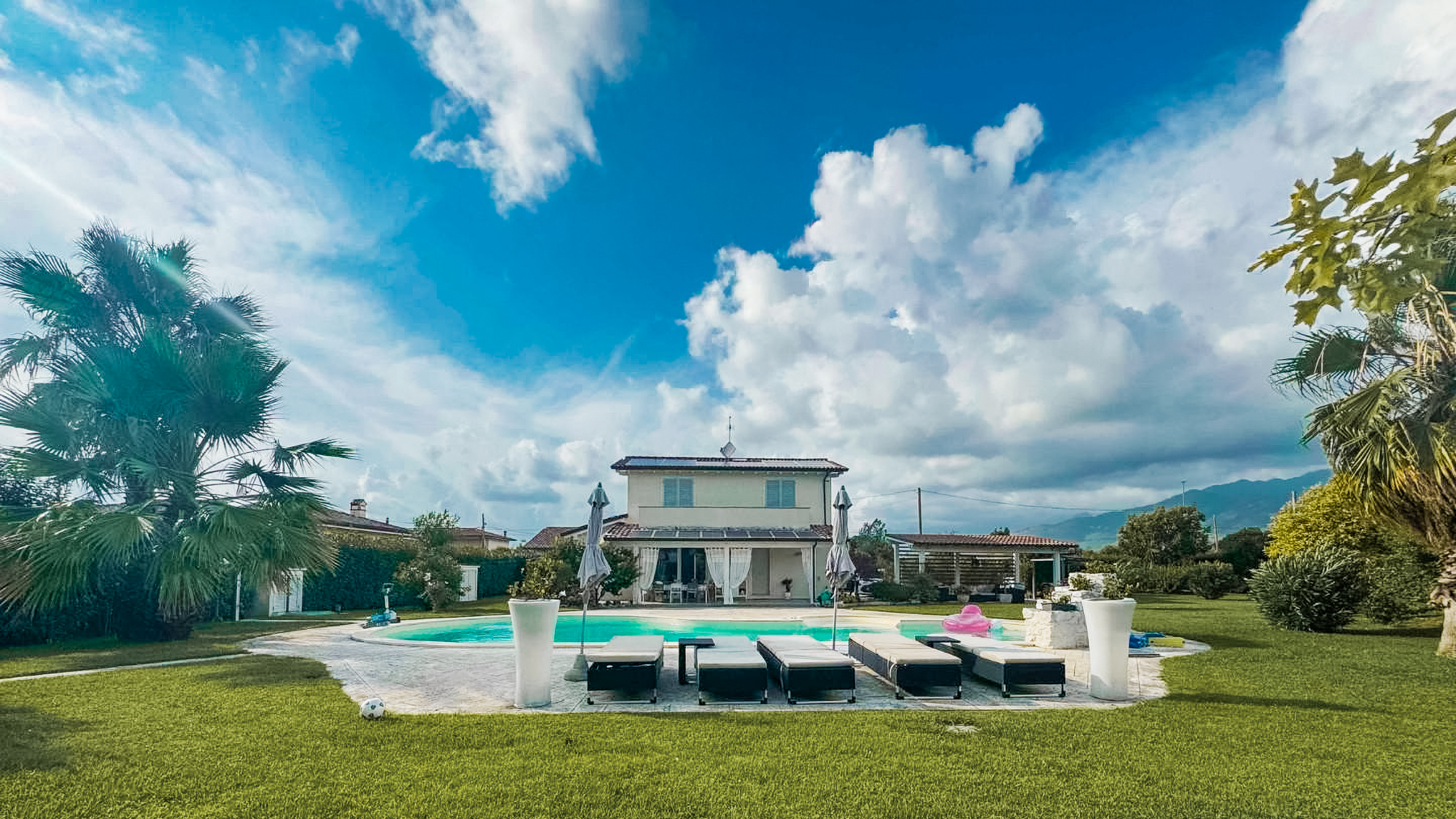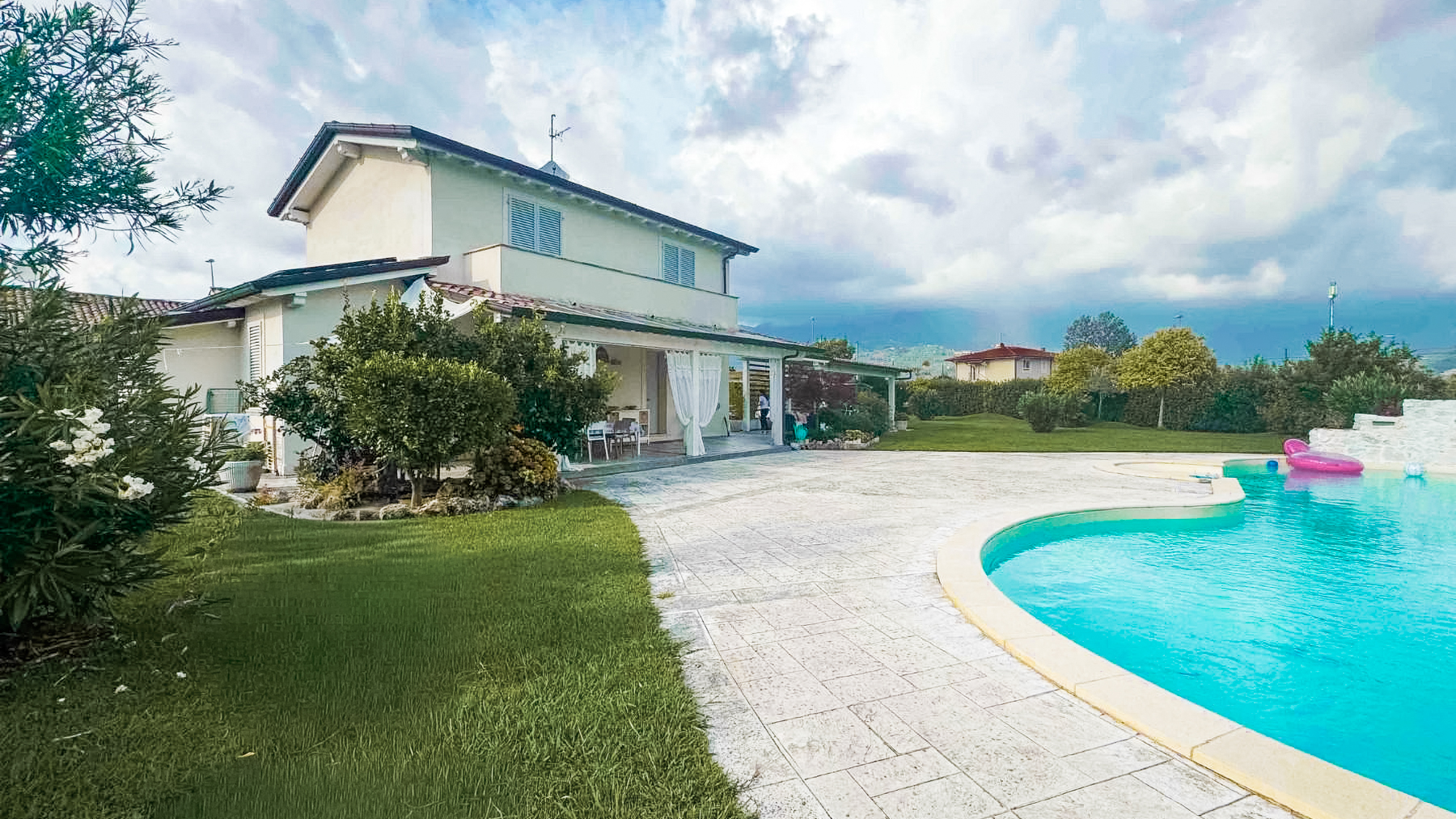 Incastonata nel cuore della campagna di Lido di Camaiore, questa villa di lusso è un rifugio di eleganza e serenità. Circondata da un paesaggio che intreccia la quiete della natura con la vivacità della Versilia, la proprietà offre una vista spettacolare che cattura l'essenza del mare e della terra. Immagina di essere accolto dal canto degli uccelli al mattino e dal profumo del mare, a pochi passi da te. La villa si estende su una superficie di 250 mq e si sviluppa su tre livelli, offrendo un totale di otto locali riccamente arredati e quattro bagni. Al piano terra, un ampio portico si affaccia sulla piscina, invitando a serate all'aperto e momenti di relax. La sala da pranzo e la cucina abitabile sono perfette per ospitare cene conviviali. Al piano superiore, due eleganti camere da letto, di cui una padronale, offrono un rifugio intimo con balcone privato. Il piano seminterrato accoglie una sala spaziosa, una camera matrimoniale, una singola, un bagno e una lavanderia. Il giardino, curato nei minimi dettagli, ospita una piscina con cascate e un'ampia zona per il parcheggio e la manovra. Qui, ogni giornata è un'opportunità per vivere un'esperienza unica. Immagina di rilassarti a bordo piscina, mentre il sole tramonta all'orizzonte, o di passeggiare nel giardino, avvolto dalla brezza marina. La villa incarna un lifestyle esclusivo, dove il tempo sembra fermarsi per lasciare spazio ai piaceri della vita. Questa residenza rappresenta un'opportunità irripetibile per chi cerca una dimora di prestigio e qualità superiore. Un equilibrio perfetto tra lusso moderno e comfort senza tempo, nel cuore della rinomata Versilia.