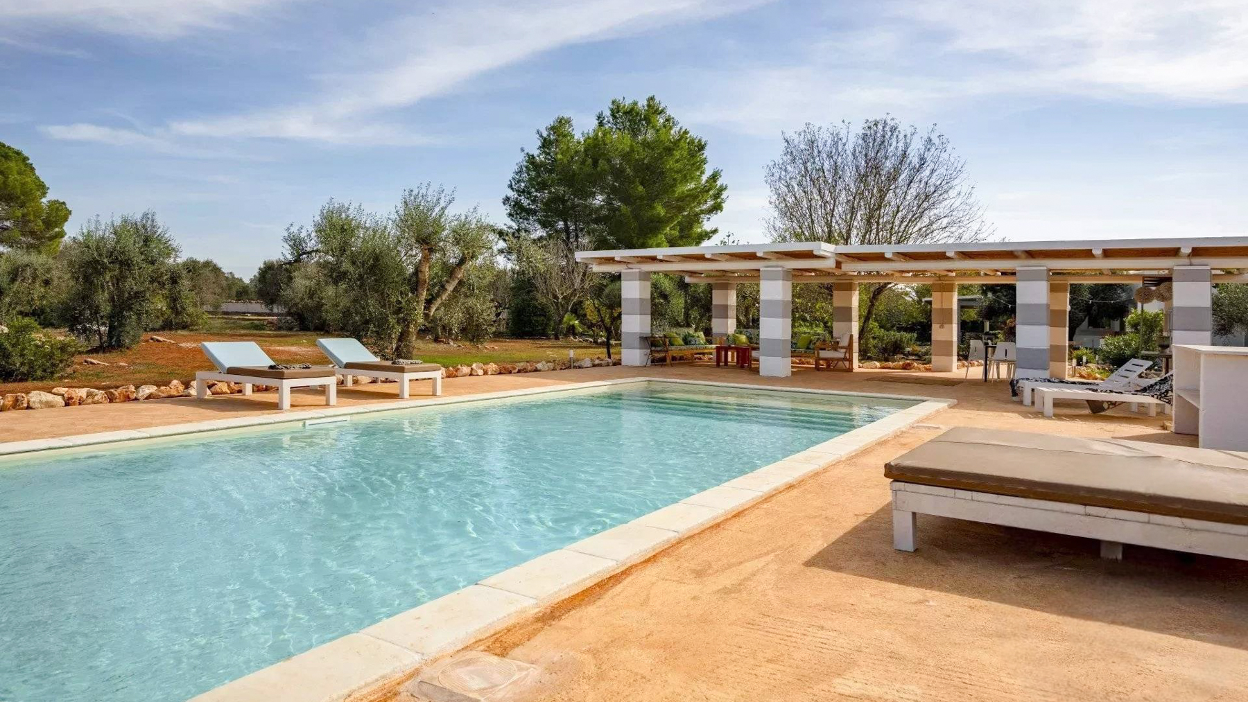 Nascosta tra le dolci colline del Salento, questa villa a Sava, Taranto, è un rifugio esclusivo che invita a vivere esperienze sensoriali uniche. Il profumo degli ulivi secolari si mescola alla brezza marina, mentre la luce calda del sole accarezza il lussureggiante giardino mediterraneo che circonda la proprietà. Con una superficie abitabile di 145 m², la villa offre spazi ampi e luminosi distribuiti su otto stanze, incluse tre eleganti camere da letto con bagno privato. Gli interni, impeccabilmente arredati, si aprono su un accogliente soggiorno e una cucina completamente attrezzata. All'esterno, un curatissimo giardino e una piscina di 40 m² promettono momenti di puro relax sotto il sole del Salento, mentre un moderno padiglione all'aperto, con eleganti tende bianche e comodi arredi, crea un ambiente ideale per godersi la serenità del paesaggio. Immagina di trascorrere le giornate sorseggiando un caffè all'ombra di un pergolato o di goderti un aperitivo al tramonto, cullato dai suoni della natura. Questa villa ti invita a celebrare la vita con cene sotto le stelle e pomeriggi rilassanti a bordo piscina, in un'oasi di pace e raffinatezza. Questa proprietà rappresenta un'opportunità irripetibile nel mercato immobiliare di lusso, un perfetto connubio tra tradizione salentina e comfort moderno. Un luogo dove ogni dettaglio è pensato per esaltare il prestigio e l'esclusività dell'esperienza abitativa.