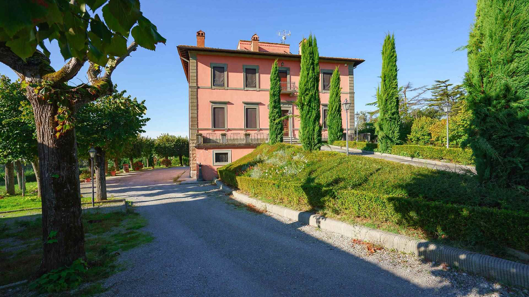 Immersa nel cuore della pittoresca campagna toscana, questa magnifica villa a Cortona emana un fascino senza tempo. Mentre ti avvicini lungo il vialetto ghiaioso, affiancato da maestosi cipressi che danzano al ritmo della brezza leggera, sei accolto da una visione di eleganza e tranquillità. Il sole gioca tra le foglie, creando giochi di luce che accarezzano la facciata rosa dell'edificio, mentre l'aria fresca porta con sé il profumo della natura circostante. Questa splendida proprietà si estende su 840 mq, offrendo uno spazio generoso e raffinato. Con i suoi tre livelli, la villa dispone di 16 vani, tra cui 8 camere da letto e 7 bagni, perfetti per famiglie numerose o per chi ama ospitare. La cucina abitabile è un rifugio caldo e accogliente, ideale per riunirsi attorno a un tavolo, mentre il soggiorno doppio, arredato con gusto, offre un ambiente elegante per momenti di puro relax. Il riscaldamento autonomo e l'aria condizionata garantiscono il massimo comfort tutto l'anno. All'esterno, un giardino di 2200 mq invita a passeggiate serene e momenti di pace, immersi nel verde rigoglioso. Immagina di trascorrere le lunghe giornate estive nel giardino, con il canto degli uccelli a farti compagnia e il sole che accarezza delicatamente la pelle. Le serate si trasformano in occasioni speciali, con cene all'aperto sotto un cielo stellato, circondati dalla bellezza naturale e dalla quiete della campagna. Questa villa rappresenta un perfetto connubio tra eleganza classica e comfort contemporaneo, un'opportunità irripetibile per chi cerca una dimora di prestigio nel cuore della Toscana. Non lasciarti sfuggire l'occasione di vivere in un luogo dove il tempo sembra fermarsi, avvolto dalla bellezza e dall'armonia.