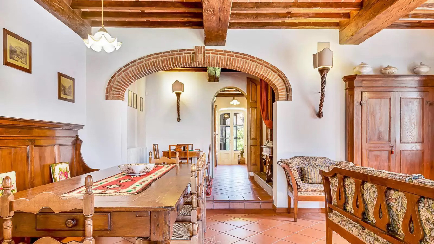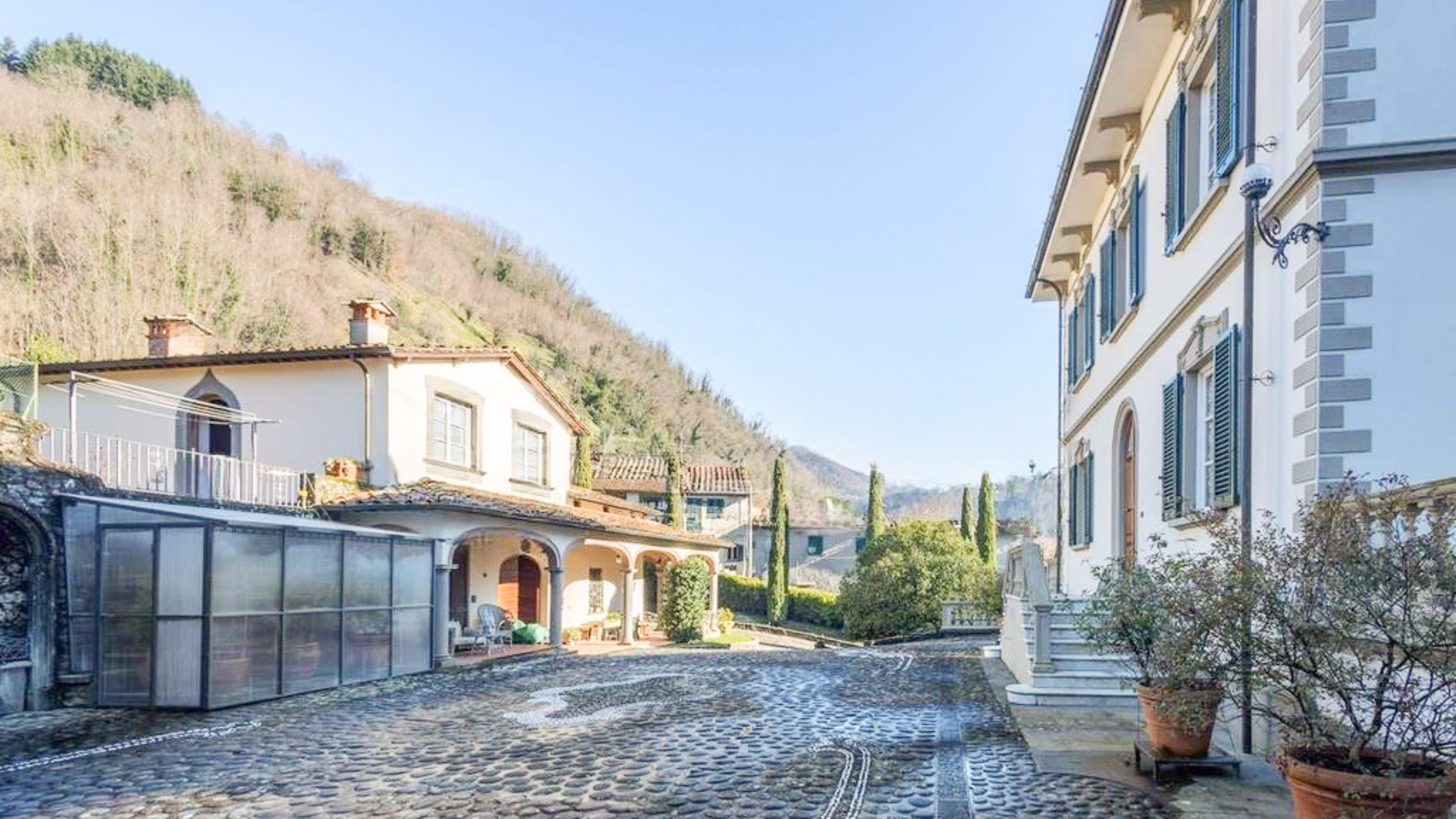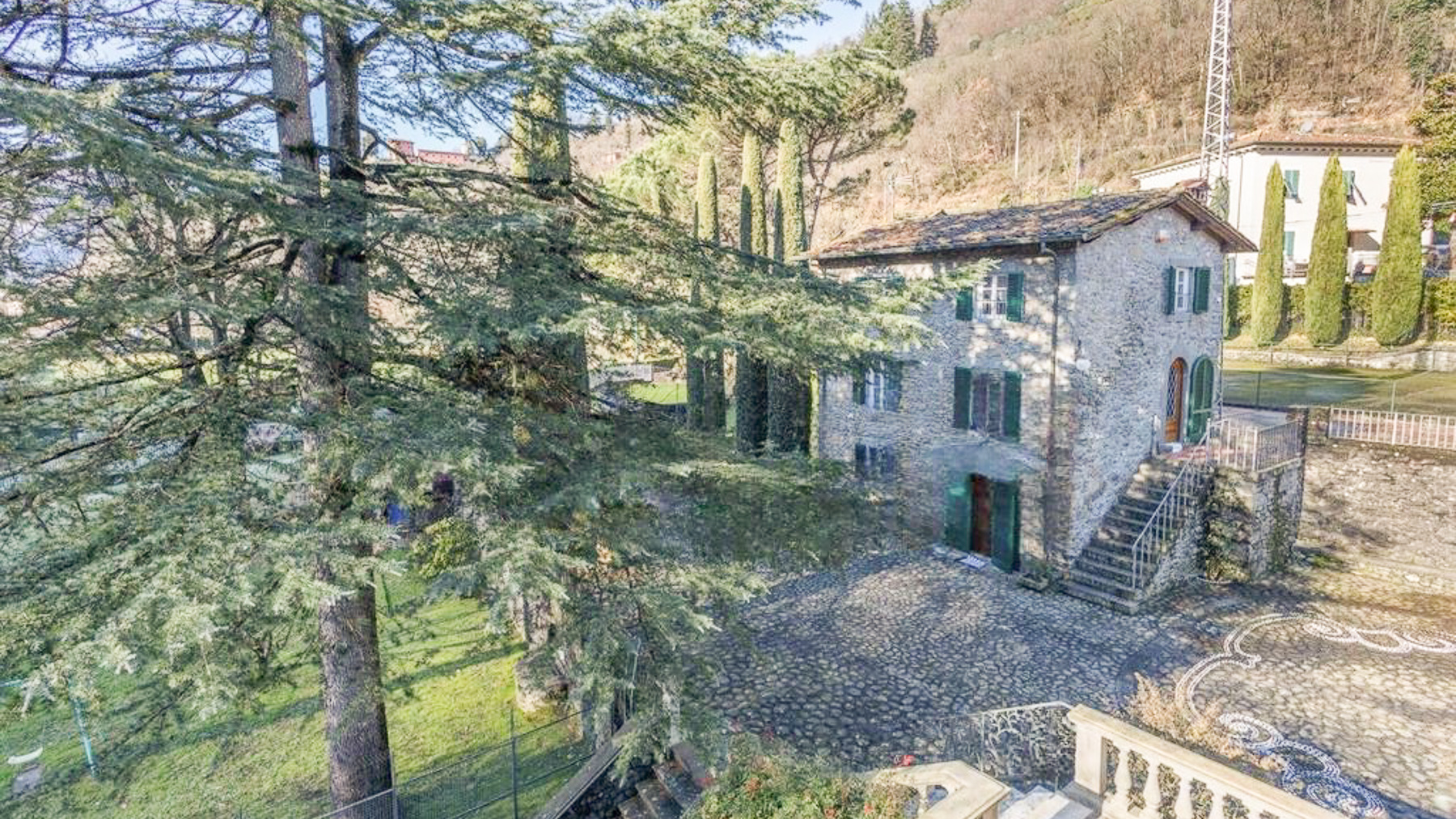 Immersa nel cuore delle colline lucchesi, questa proprietà unica è un vero rifugio di tranquillità e lusso. Circondata dalla natura rigogliosa, offre una vista mozzafiato e il dolce suono dell'acqua sorgiva che scorre dalle fontane del giardino. L'atmosfera è quella di un antico borgo toscano, dove ogni dettaglio richiama un'era passata, ma con il comfort moderno che ci si aspetta da una residenza di prestigio. La tenuta si estende su un'ampia superficie di 810 mq, comprendendo una villa principale, una casa del contadino in pietra e una magnifica limonaia. Con un totale di 5 stanze e 3 bagni, ogni angolo è stato progettato per offrire il massimo del comfort. La villa principale, con i suoi 430 mq, si sviluppa su due piani e un seminterrato, vantando ampi spazi soggiorno, una cucina raffinata e terrazze che si affacciano su un giardino di 4800 mq. La limonaia, oltre a offrire un garage per tre auto, dispone di un accogliente spazio per gli ospiti al primo piano. Vivere qui significa abbracciare un lifestyle di eleganza e serenità. Immagina di trascorrere le fresche mattine estive passeggiando tra gli alberi del giardino, o di godere di una partita di tennis al tramonto, seguita da una cena intima nella taverna della villa. La casa del contadino e la limonaia offrono spazi ideali per accogliere amici e familiari, creando ricordi indimenticabili in un ambiente che sembra fuori dal tempo. Questa straordinaria proprietà rappresenta una rara opportunità di possedere un angolo di paradiso toscano, un perfetto equilibrio tra tradizione e modernità, dove ogni giornata è un'esperienza di lusso e bellezza. Non perdere l'occasione di farne parte.