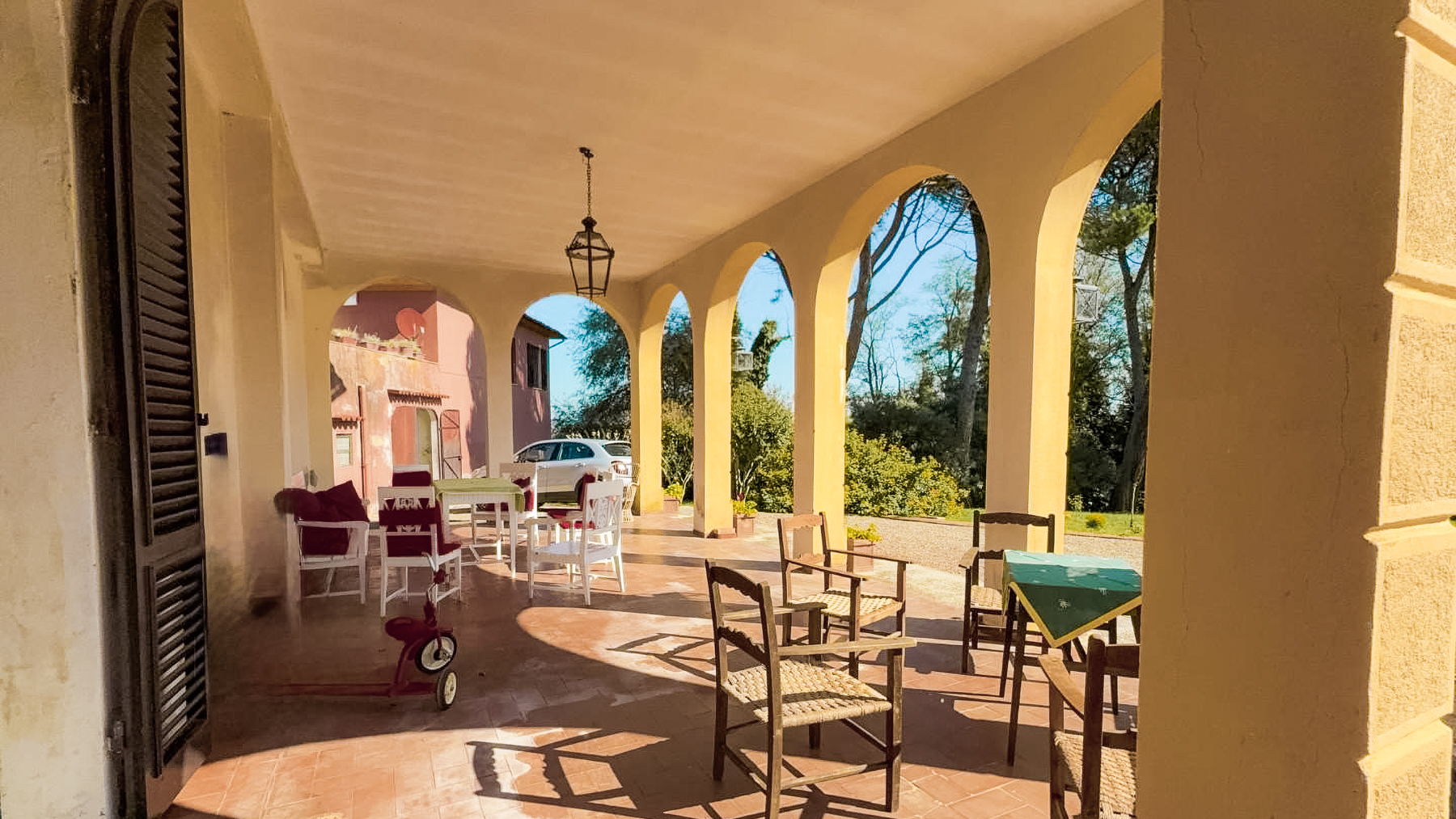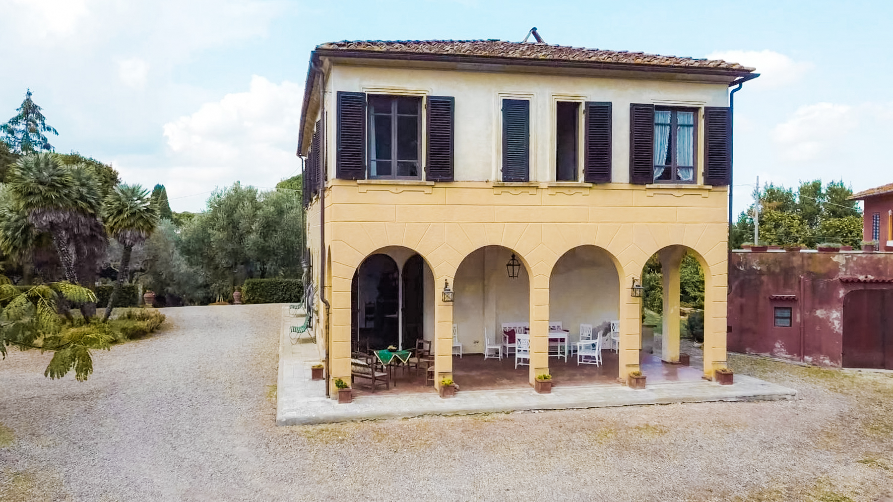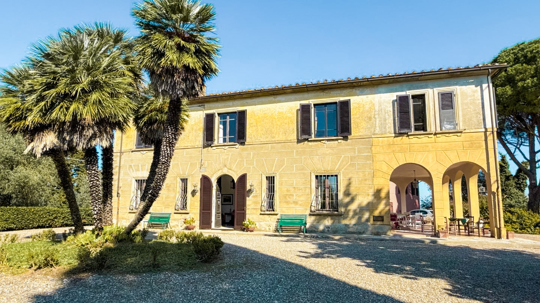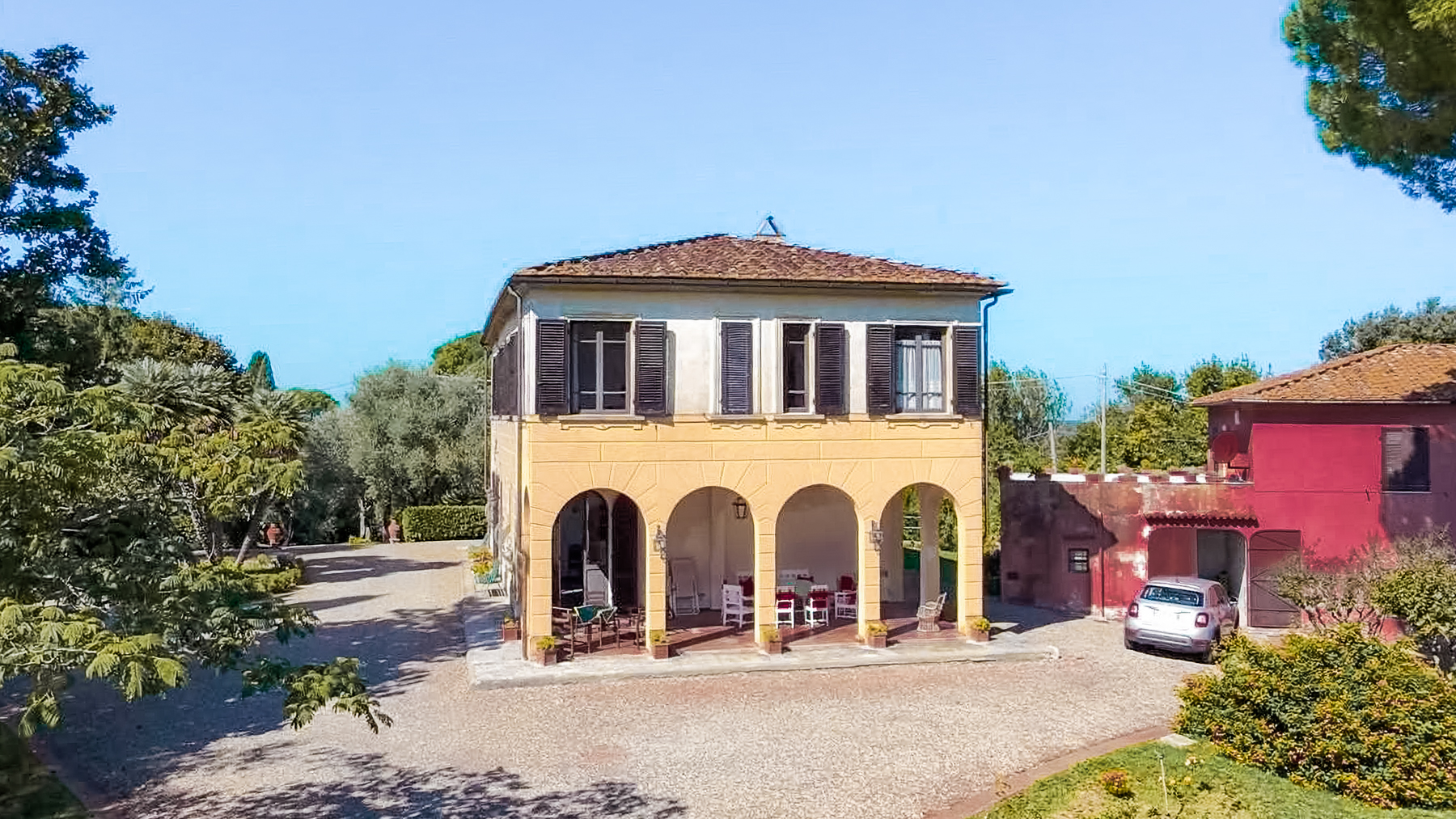 Nel cuore delle colline toscane, avvolta in un'atmosfera di pace e bellezza, sorge una villa storica che racconta storie di un tempo passato. Il sole accarezza dolcemente la facciata in pietra gialla, mentre il profumo degli olivi e delle magnolie secolari riempie l'aria. Un luogo dove il canto degli uccelli si mescola al fruscio del vento tra le palme, creando un'armonia perfetta con il paesaggio circostante. Questa prestigiosa proprietà a Crespina Lorenzana, Pisa, si estende su 910 metri quadri di eleganza senza tempo. La villa principale, articolata su due livelli più una torre panoramica, offre ampi spazi abitativi, con sei camere da letto luminose e tre bagni. Al suo interno, un grande salone con camino in marmo rosso di Levanto e soffitti alti, una sala da pranzo con accesso al porticato, e una cucina separata, raccontano di un'architettura curata nei minimi dettagli. La dependance, suddivisa su tre livelli con due appartamenti indipendenti, è ideale per accogliere ospiti o personale. Il parco privato di circa 4 ettari, adornato da piante monumentali, offre un rifugio esclusivo e riservato. Vivere in questa villa significa immergersi in un lifestyle di lusso e tranquillità. Immagina di passeggiare lungo i viali alberati del parco, respirando l'aria fresca e godendo di una vista mozzafiato sulle colline pisane. Le serate estive diventano magiche, trascorse sotto le stelle con amici e famiglia, circondati dal profumo dei fiori e dalla brezza leggera. Questa proprietà è un raro gioiello nel panorama immobiliare di lusso, un equilibrio perfetto tra fascino storico e comfort moderno. Un'opportunità unica per chi cerca autenticità e prestigio in Toscana.