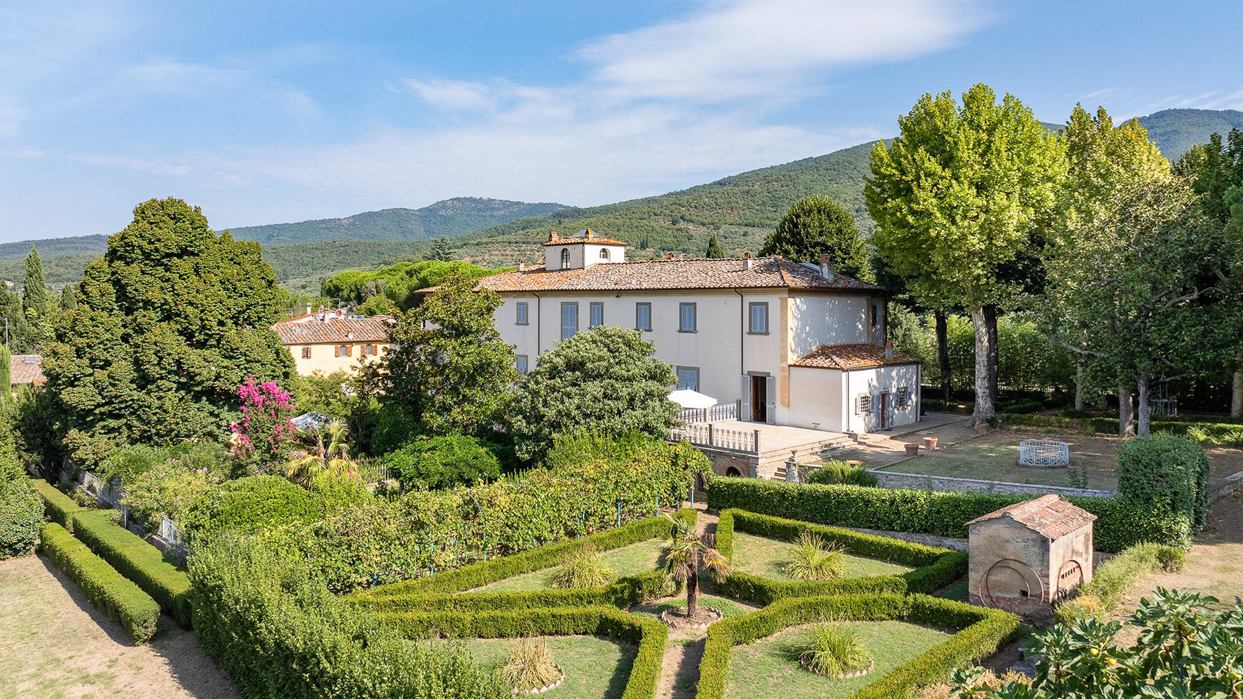 Immersa tra le dolci colline toscane, questa magnifica villa del 1400 si erge maestosa, offrendo un rifugio di lusso e serenità a pochi minuti dal cuore pulsante di Arezzo. Circondata da 2,5 ettari di verde rigoglioso, la proprietà invita a perdersi tra i profumi inebrianti dei giardini curati e le viste panoramiche sulle colline circostanti. Qui, la storia incontra il comfort moderno, creando un'atmosfera unica e affascinante. La villa si estende su una superficie di oltre 1000 mq, suddivisa su tre livelli, e comprende 26 stanze e 5 bagni. Al piano terra, recentemente ristrutturato, si trovano cantine con volte in mattoncini e spazi ideali per una spa. Il piano nobile, con terrazza di 80 mq, offre una cucina luminosa, sala da pranzo, soggiorni eleganti e camere spaziose. Al secondo piano, ampi saloni e camere accolgono con viste mozzafiato. La proprietà comprende anche una cappella barocca del XVII secolo e la possibilità di acquisire ulteriori appartamenti e terreni, inclusa un'ex Limonaia finemente ristrutturata. Immagina di vivere giornate avvolte nella bellezza della campagna toscana, dove ogni mattina è un'opera d'arte e ogni sera un invito alla tranquillità. La terrazza panoramica diventa il luogo ideale per cene estive sotto un cielo stellato, mentre i giardini offrono un rifugio per momenti di pace e riflessione. Questa villa è un gioiello raro, un'opportunità irripetibile per chi cerca il prestigio e l'eleganza di una dimora storica, combinati con il fascino e la comodità della vita moderna. Un capolavoro nel panorama immobiliare di lusso che attende il suo prossimo capitolo.