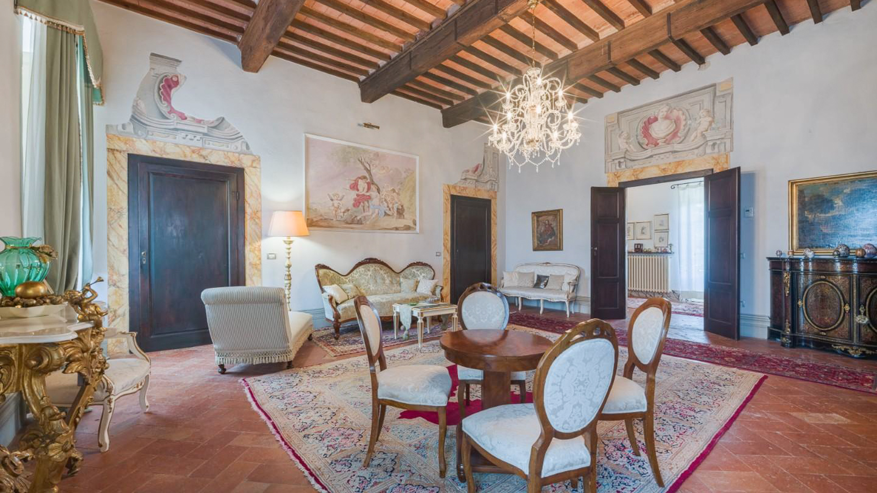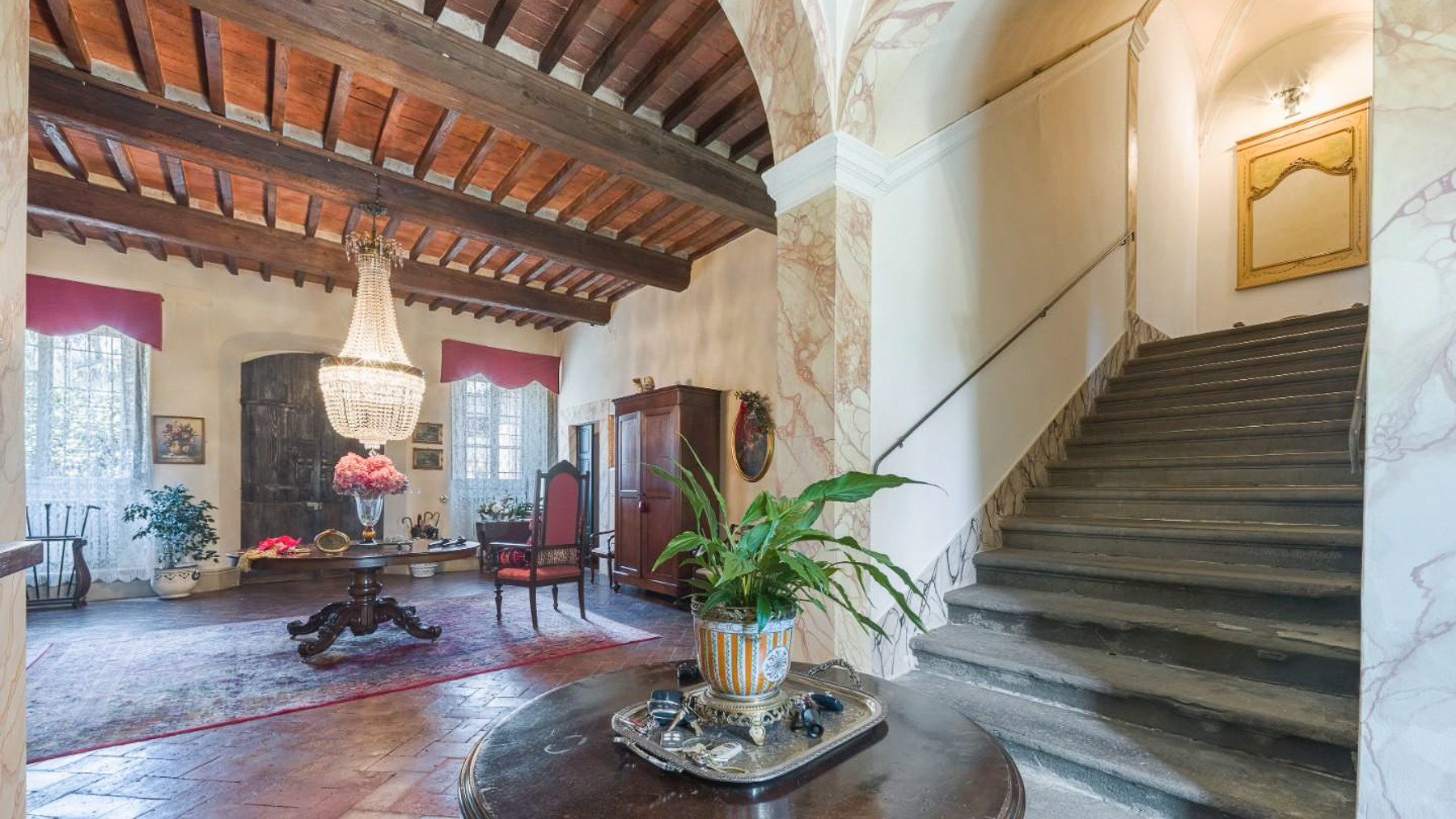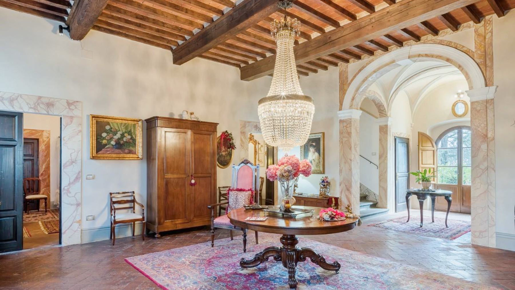 Nel cuore di un affascinante borgo collinare della Toscana, questa straordinaria residenza nobiliare del XVII secolo incanta con la sua maestosità e l'atmosfera senza tempo. Immagina di passeggiare nel giardino all'italiana, circondato da profumi di fiori e ulivi, mentre il sole tramonta oltre le colline, inondando tutto di una luce dorata. Questa prestigiosa villa, situata a Santa Maria a Monte, provincia di Pisa, si estende per 1111 mq su tre piani, offrendo 25 stanze e 5 bagni. Ogni angolo della proprietà è stato restaurato con cura, riportando alla luce affreschi storici e dettagli architettonici unici. Gli impianti elettrici e idraulici sono moderni ed efficienti, garantendo il massimo del comfort. Il progetto approvato per una piscina (15x8) aggiungerà ulteriore fascino, rendendo questa proprietà ideale sia come residenza privata di lusso che come location esclusiva per eventi e matrimoni. L'antico parco privato, racchiuso da mura storiche, offre un rifugio di pace e bellezza. Vivere in questa dimora significa abbracciare uno stile di vita unico, dove il passato incontra il presente in una cornice di eleganza e tranquillità. Immagina serate estive trascorse nel rigoglioso giardino, accompagnate dal canto degli uccelli e dal dolce profumo delle piante. La posizione strategica ti permette di esplorare le meraviglie della Toscana, con città come Firenze, Pisa e Lucca a breve distanza, e di godere delle vicine terme e parchi naturali. Questa proprietà rappresenta un'opportunità irripetibile per chi desidera possedere un pezzo di storia toscana, combinando eleganza, privacy e un accesso privilegiato ai tesori artistici italiani. Una dimora che incarna il perfetto equilibrio tra tradizione e modernità, pronta a raccontare nuove storie.