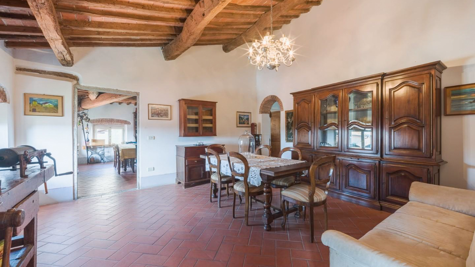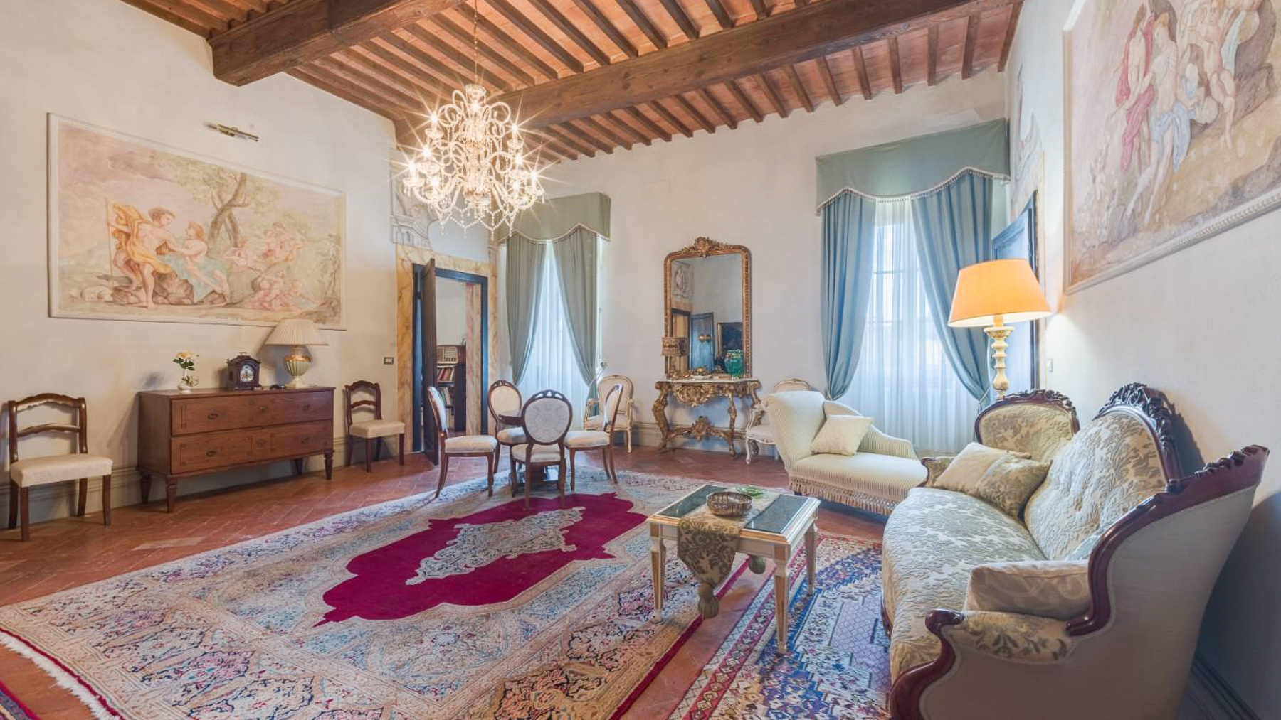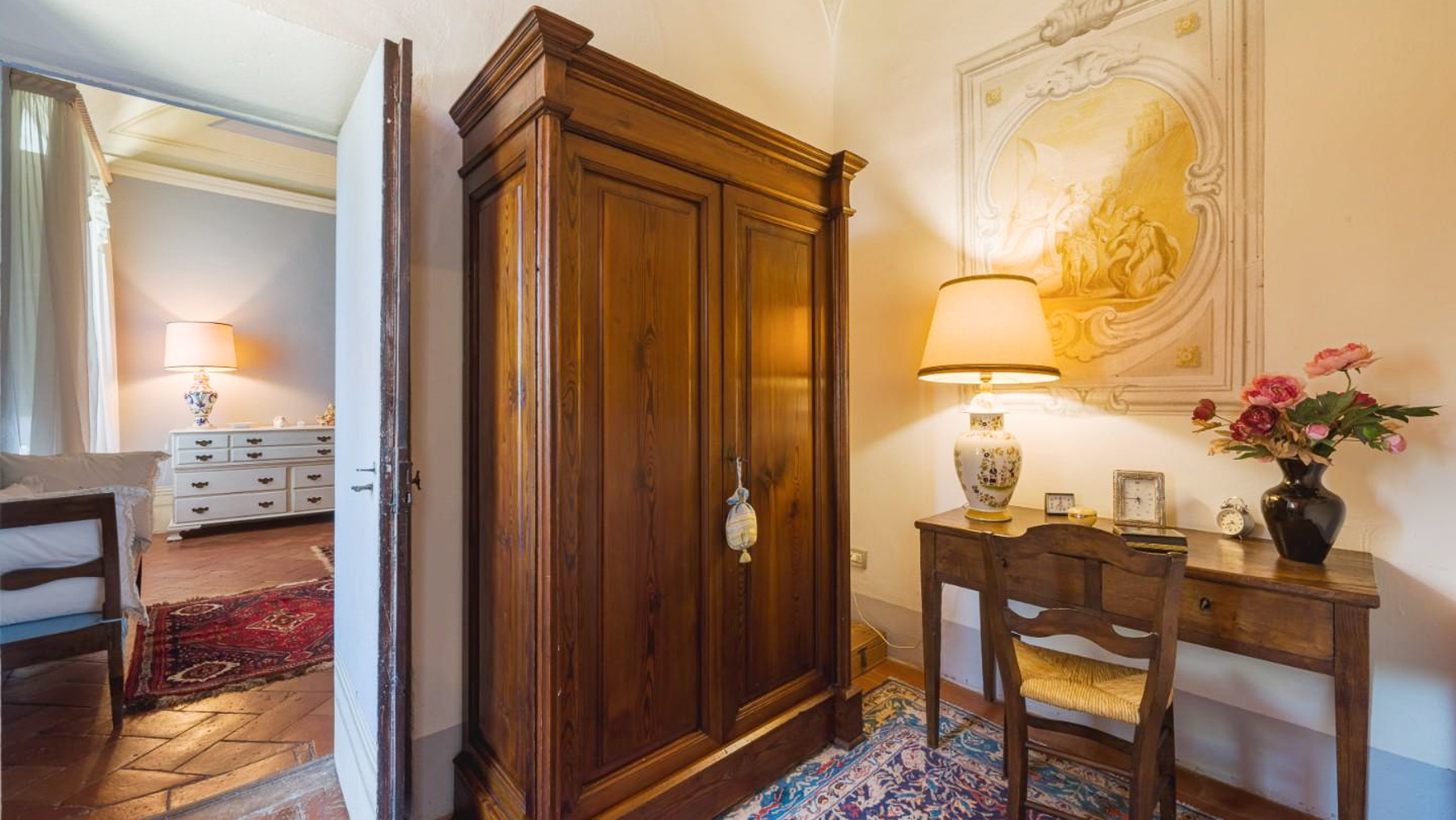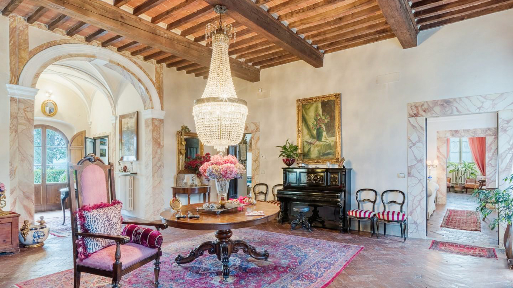 Nel cuore di un affascinante borgo collinare della Toscana, questa straordinaria residenza nobiliare del XVII secolo incanta con la sua maestosità e l'atmosfera senza tempo. Immagina di passeggiare nel giardino all'italiana, circondato da profumi di fiori e ulivi, mentre il sole tramonta oltre le colline, inondando tutto di una luce dorata. Questa prestigiosa villa, situata a Santa Maria a Monte, provincia di Pisa, si estende per 1111 mq su tre piani, offrendo 25 stanze e 5 bagni. Ogni angolo della proprietà è stato restaurato con cura, riportando alla luce affreschi storici e dettagli architettonici unici. Gli impianti elettrici e idraulici sono moderni ed efficienti, garantendo il massimo del comfort. Il progetto approvato per una piscina (15x8) aggiungerà ulteriore fascino, rendendo questa proprietà ideale sia come residenza privata di lusso che come location esclusiva per eventi e matrimoni. L'antico parco privato, racchiuso da mura storiche, offre un rifugio di pace e bellezza. Vivere in questa dimora significa abbracciare uno stile di vita unico, dove il passato incontra il presente in una cornice di eleganza e tranquillità. Immagina serate estive trascorse nel rigoglioso giardino, accompagnate dal canto degli uccelli e dal dolce profumo delle piante. La posizione strategica ti permette di esplorare le meraviglie della Toscana, con città come Firenze, Pisa e Lucca a breve distanza, e di godere delle vicine terme e parchi naturali. Questa proprietà rappresenta un'opportunità irripetibile per chi desidera possedere un pezzo di storia toscana, combinando eleganza, privacy e un accesso privilegiato ai tesori artistici italiani. Una dimora che incarna il perfetto equilibrio tra tradizione e modernità, pronta a raccontare nuove storie.