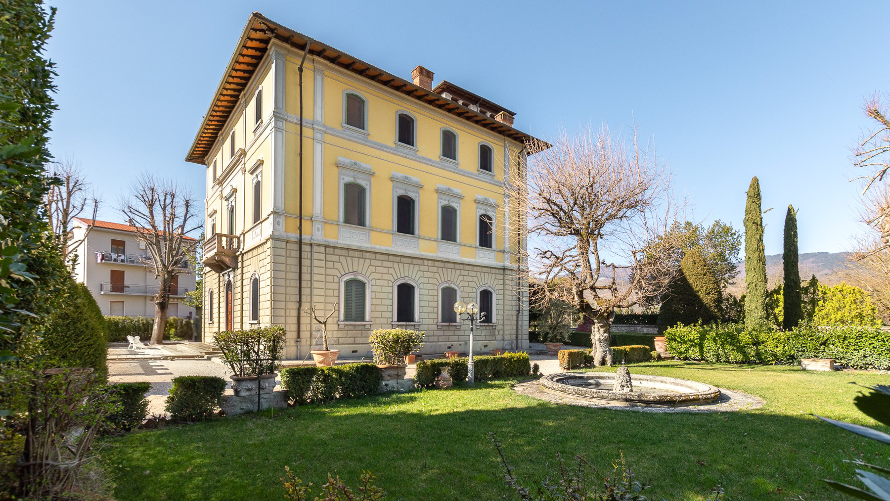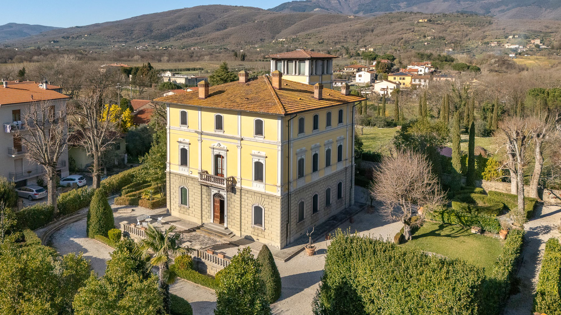 Incastonata tra le dolci colline toscane, questa villa storica si erge maestosa, avvolta dal profumo dei cipressi e accarezzata dalla brezza che giunge dal massiccio del Pratomagno. Il sole che tramonta dietro le celebri Balze regala un'atmosfera magica, mentre il canto degli uccelli accompagna le giornate in questo angolo di paradiso. Con una superficie di 750 mq, la villa si sviluppa su tre piani, offrendo 17 stanze e 4 bagni, ognuno arredato con dettagli di pregio come marmi e caminetti d'epoca. Il restauro conservativo ha restituito splendore a soffitti decorati, marmorini e stucchi. La proprietà è immersa in un "giardino all'italiana" di 2.800 mq, ornato da siepi di bosso e tassi piramidali, percorsi in ghiaia e una grande vasca in pietra che riflette la luce del cielo. Situata a Terranuova Bracciolini, in provincia di Arezzo, la villa offre un lifestyle di campagna, pur essendo a pochi passi dalla vibrante vita culturale della regione. Vivere in questa dimora significa godere di un'esperienza unica, dove la storia e la natura si fondono. Immagina di trascorrere pomeriggi oziosi nel giardino, tra i profumi delle erbe aromatiche e il suono dell'acqua che scorre, o serate invernali accanto al caminetto, con il calore che avvolge l'intera famiglia. Ogni angolo della villa invita al relax e alla contemplazione, regalando momenti di pura serenità. Questa villa rappresenta il perfetto equilibrio tra eleganza senza tempo e comfort moderno, un'opportunità unica nel panorama immobiliare di lusso. Un rifugio esclusivo che promette di incantare chiunque varchi la soglia.