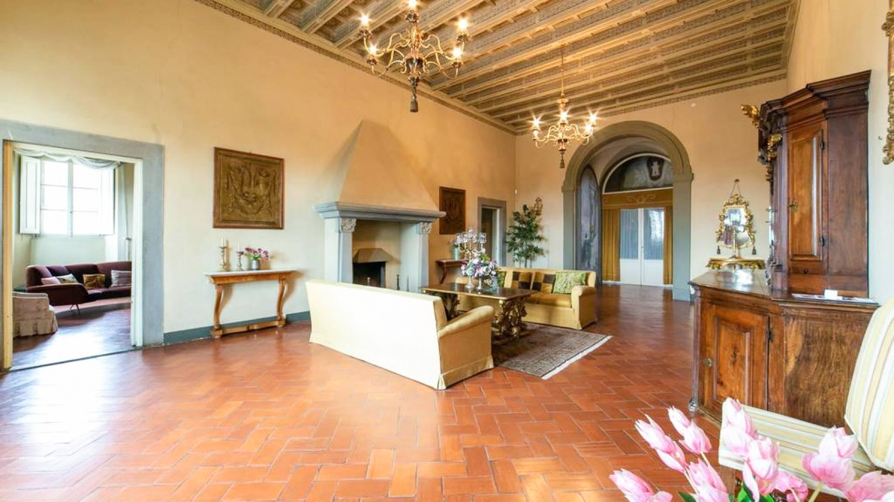 Nel cuore della campagna toscana, avvolta dalla bellezza senza tempo della natura, sorge una magnifica tenuta che incanta i sensi. Gli aromi dei giardini e dei frutteti si fondono con la brezza leggera, mentre la luce del sole gioca tra le foglie degli alberi, creando un'atmosfera di rara serenità e lusso. Questa sontuosa proprietà di 4.500 mq, situata a Santa Croce sull'Arno, Pisa, è un simbolo di eleganza e storia. La villa rinascimentale, con i suoi 20 ambienti e 10 bagni, si sviluppa su tre livelli, offrendo ampi spazi per il relax e momenti di convivialità. Gli edifici annessi, tra cui una fattoria, un granaio, una limonaia, una legnaia e una chiesa con cappella privata affrescata, aggiungono un fascino unico a questa dimora di prestigio, perfettamente incastonata nel paesaggio toscano. Vivere qui significa immergersi in un'esperienza sensoriale unica. Immagina di trascorrere giornate nei giardini all'italiana, lasciandoti incantare dalla vista delle torri di San Miniato all'orizzonte, o di passeggiare nel labirinto di siepi di alloro fino alla grotta dell'eremita, un angolo di riflessione e pace interiore. Questa villa è un'opportunità irripetibile per chi desidera unire il fascino storico con il lusso contemporaneo. Un gioiello immobiliare che incarna l'essenza dell'eleganza toscana, pronto ad accogliere i suoi nuovi proprietari in un abbraccio senza tempo.
