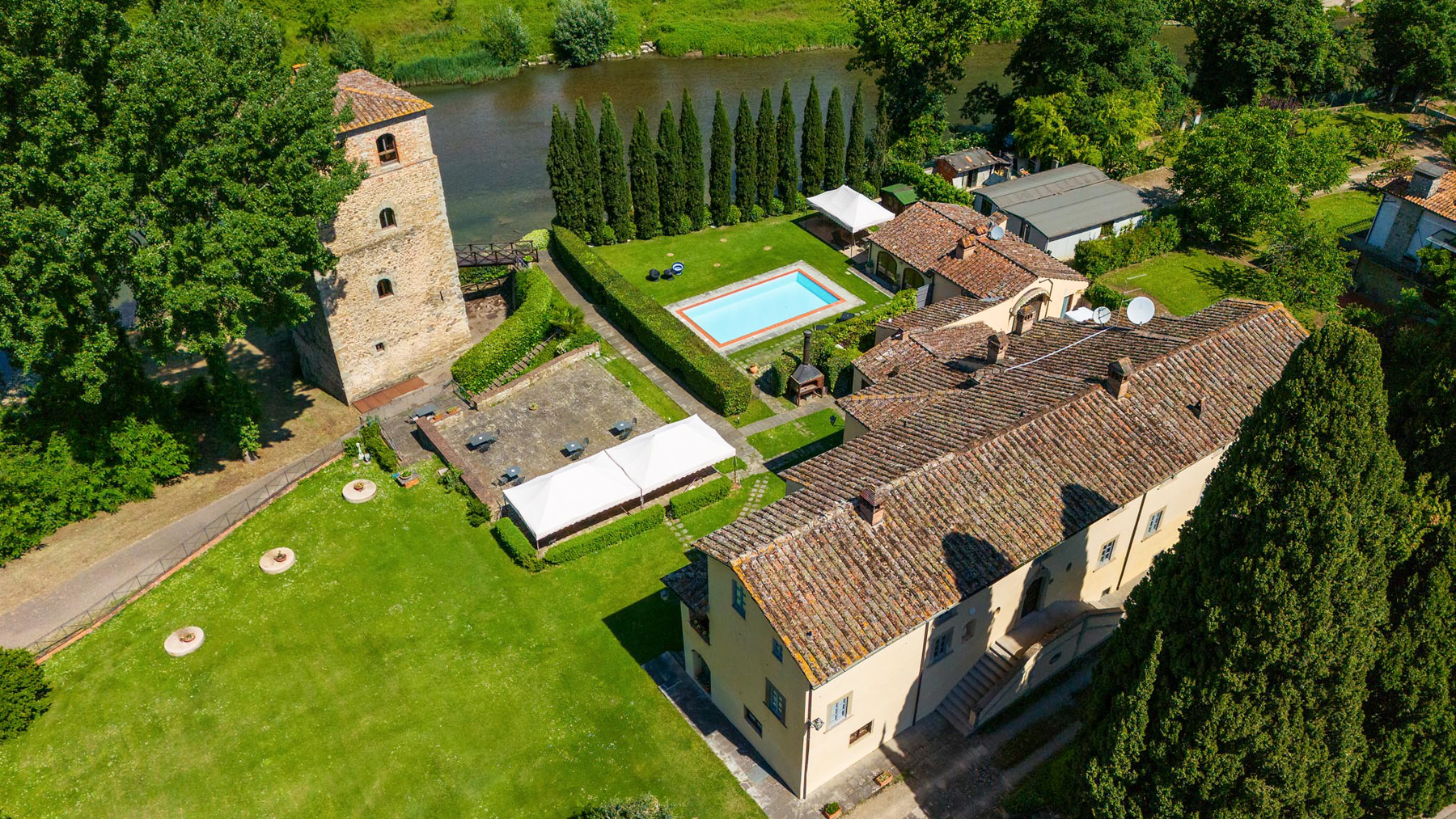 Immersa tra le affascinanti colline dell'Appennino Tosco-Romagnolo, lungo le rive del suggestivo fiume Arno, questa residenza d'epoca del XVII secolo è un rifugio di bellezza e storia. Qui, i profumi delle vigne toscane si mescolano alla brezza che accarezza i cipressi, creando un'atmosfera di pace e lusso senza tempo. La proprietà si estende su 1500 mq e comprende una maestosa villa seicentesca e una torre medievale unica nel suo genere. Con un totale di 26 stanze e 20 bagni, ogni angolo della villa è un tributo all'eleganza rinascimentale e medievale, con soffitti a travi in legno, pavimenti in cotto e letti a baldacchino in ferro battuto. All'esterno, una piscina incastonata nel parco di 7000 mq offre momenti di relax con vista panoramica sulle colline circostanti. Vivere qui significa abbracciare un lifestyle di serenità e raffinatezza. Immagina giornate trascorse a passeggiare tra i giardini, serate estive a bordo piscina con il cielo stellato come scenario, e momenti di puro benessere nella SPA della torre medievale, dove tradizione e comfort moderno si incontrano. Questa straordinaria dimora è una rara gemma nel panorama immobiliare di lusso, un'opportunità unica per chi cerca un equilibrio armonioso tra il fascino storico e il comfort esclusivo della campagna toscana.