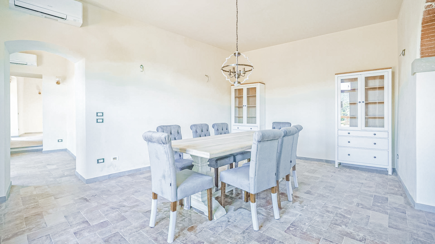 Nel cuore pulsante della magica campagna toscana, avvolta dai paesaggi incantevoli del Chianti, sorge questa villa signorile del 1700. Qui, la quiete della natura si fonde con l'eleganza storica, mentre la luce dorata del sole accarezza la pietra antica, regalando un'atmosfera di pace e raffinatezza. Questa dimora di 440 mq si sviluppa su due livelli, accogliendo 12 spaziosi ambienti, ognuno progettato con cura per offrire un equilibrio perfetto tra tradizione e modernità. La villa dispone di 7 bagni, assicurando il massimo comfort e privacy. Gli interni sono un omaggio all'artigianato d'epoca, con arredi di pregio, soffitti in legno con travi a vista, e un grande camino storico che racconta storie di calore familiare. All'esterno, un giardino privato si estende per oltre 2,7 ettari di terreno, tra boschi e uliveti secolari, creando un'oasi esclusiva di bellezza naturale. Vivere in questa villa significa abbracciare uno stile di vita unico, dove ogni giorno è un'esperienza sensoriale. Immagina di svegliarti con il canto degli uccelli, mentre la brezza mattutina porta con sé il profumo degli ulivi. Le serate, invece, si illuminano di stelle mentre ti rilassi sul balcone in legno, ammirando le colline verdi che si perdono all'orizzonte. Questa villa rappresenta il perfetto connubio tra storia e modernità, un'opportunità rara per chi cerca una residenza di lusso in uno dei luoghi più affascinanti d'Italia. Un tesoro esclusivo nel cuore del Chianti, dove la bellezza senza tempo si incontra con il comfort contemporaneo.