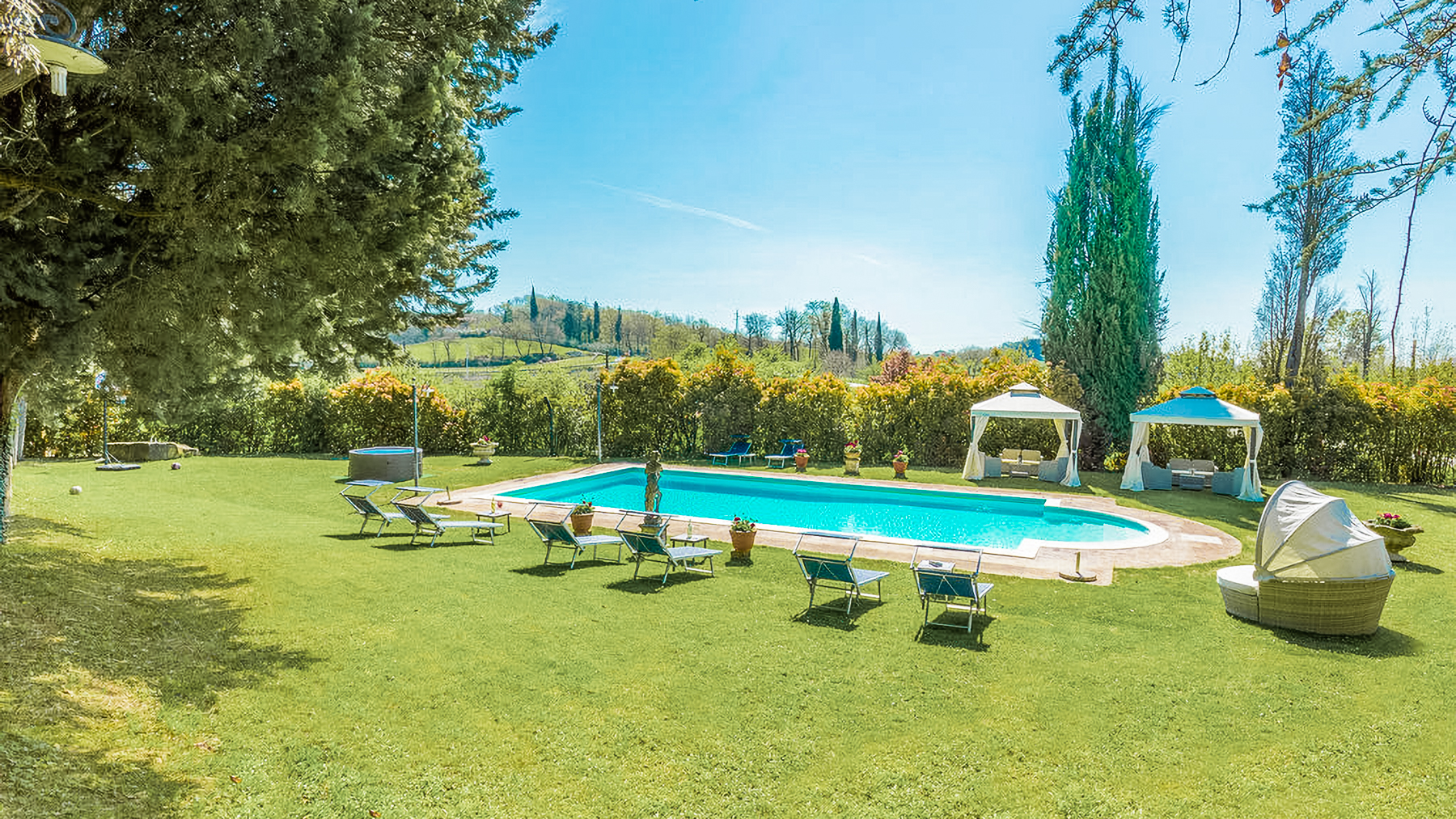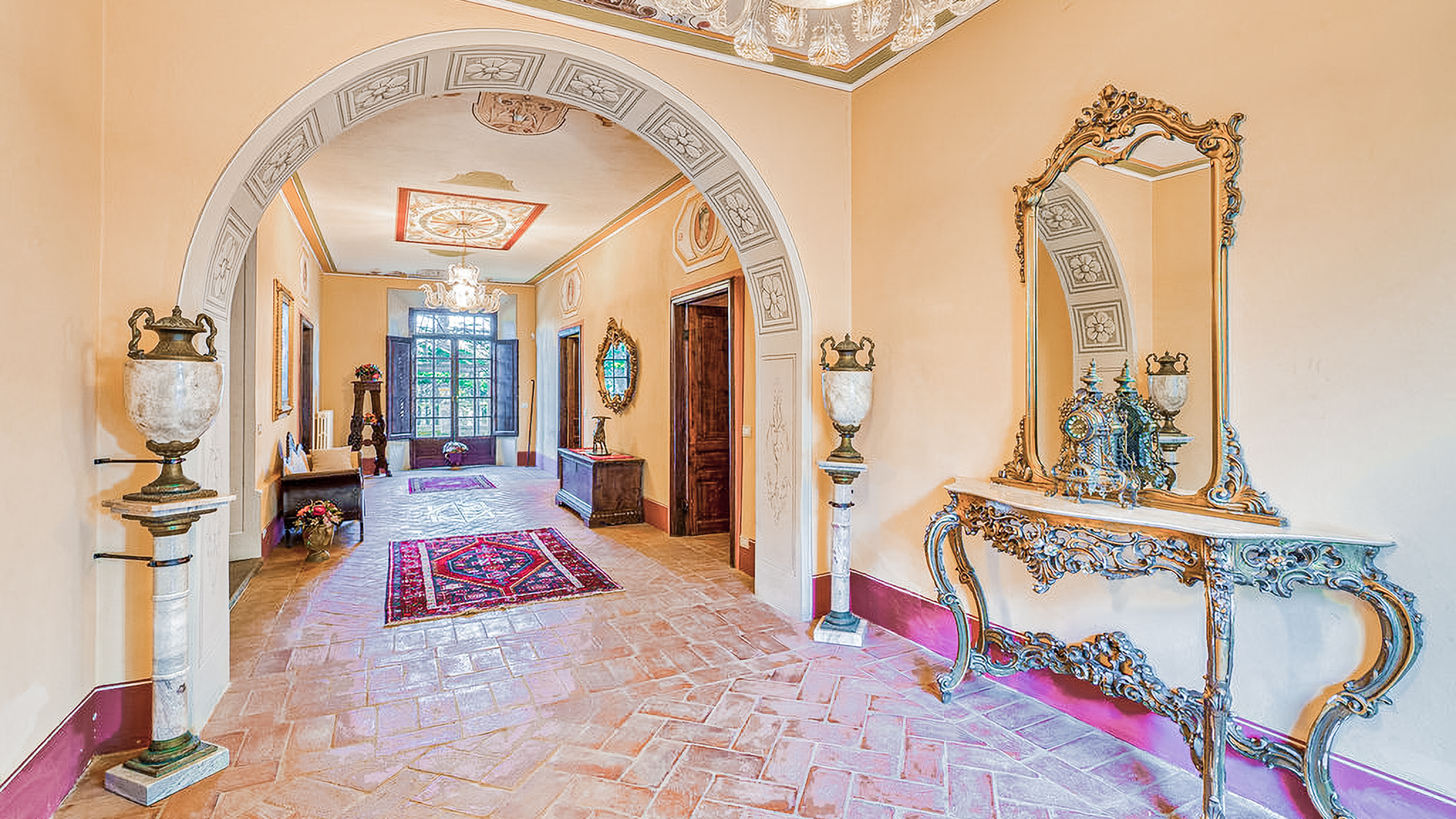 Immersa tra le dolci colline toscane, questa villa del 1500 è un rifugio di pace e lusso. Circondata da un mare di verde, la proprietà offre un'esperienza sensoriale unica: il profumo dei cipressi, il suono delle foglie mosse dal vento e la vista di un paesaggio che sembra un dipinto. Qui, il tempo sembra fermarsi, regalando momenti di pura serenità. La proprietà si trova a Foiano della Chiana (AR) e si estende su 1400 mq. La villa, elegantemente ristrutturata, si sviluppa su tre piani con 43 stanze e 18 bagni. Gli interni, con affreschi originali e travi in legno, si sposano con comfort moderni come l’aria condizionata. All'esterno, un giardino all'italiana e due piscine, una con idromassaggio, offrono spazi ideali per il relax. Completano la proprietà una cappella privata e un'ex-colonica, arricchite da dettagli storici. Vivere in questa villa significa abbracciare un lifestyle di rara bellezza. Immagina di sorseggiare un vino toscano sulla terrazza mentre il sole tramonta, tingendo il cielo di oro. Le serate estive si trasformano in cene all'aperto nel giardino profumato, con nuotate sotto le stelle. Ogni angolo invita a rilassarsi, ispirati dalla natura circostante. Questa villa è una gemma rara nel panorama immobiliare di lusso, un equilibrio perfetto tra storia e modernità. Un'opportunità unica per chi cerca una dimora di prestigio immersa nella bellezza senza tempo della campagna toscana.
