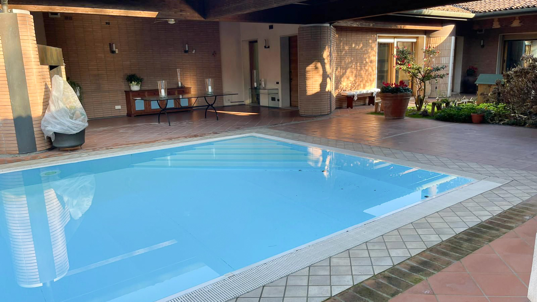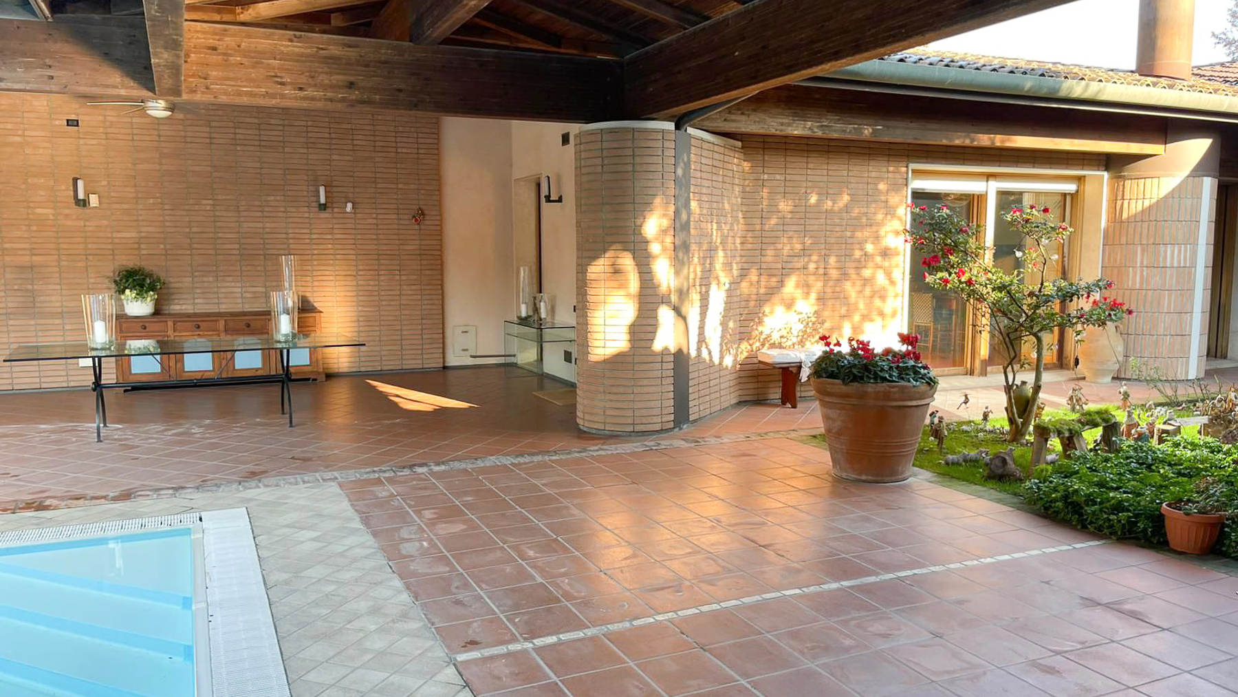 Nel cuore pulsante di Verolanuova, nel bresciano, si erge una raffinata dimora che incarna l'essenza dell'eleganza e della tranquillità. Avvolta dalla luce naturale che filtra attraverso ampie finestre, questa residenza invita a vivere una vita di lusso e serenità, dove il suono leggero del vento tra le foglie e il profumo dei fiori del giardino interno creano un'atmosfera di raro fascino. Distribuita su 500 mq, questa proprietà si compone di 10 stanze e 4 bagni, perfettamente progettata per offrire il massimo del comfort. Il soggiorno, con due poltrone verdi e un divano beige, si apre su un suggestivo giardino, mentre una moderna cucina e una zona notte con tre camere, inclusa una suite principale con bagno privato e guardaroba, si integrano armoniosamente. La piscina privata rappresenta un'oasi di relax, perfetta per rinfrescarsi nelle calde giornate estive. Vivendo qui, ogni momento diventa un'opportunità per creare ricordi indimenticabili. Immagina di accogliere gli amici in soggiorno, con il camino acceso che diffonde un calore avvolgente, o di svegliarti nella tua camera da letto moderna e minimalista, con la vista del giardino che ti saluta ogni mattina. La vita qui è un invito a godere di ogni istante, in un ambiente che unisce tradizione e design contemporaneo. Questa residenza rappresenta un'opportunità irripetibile nel cuore di Brescia, un simbolo di raffinatezza e comfort che conquista al primo sguardo. Un luogo dove l'eleganza senza tempo si fonde con il lusso moderno, offrendo un rifugio esclusivo per chi sa apprezzare il meglio della vita.