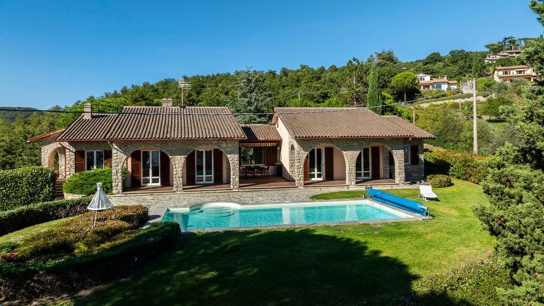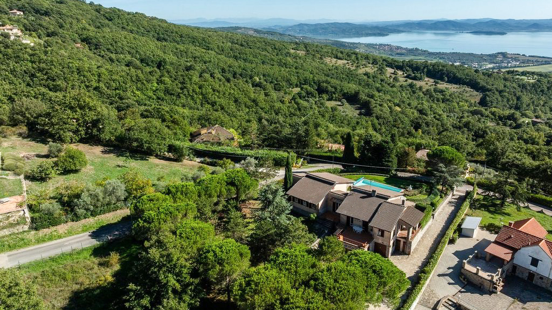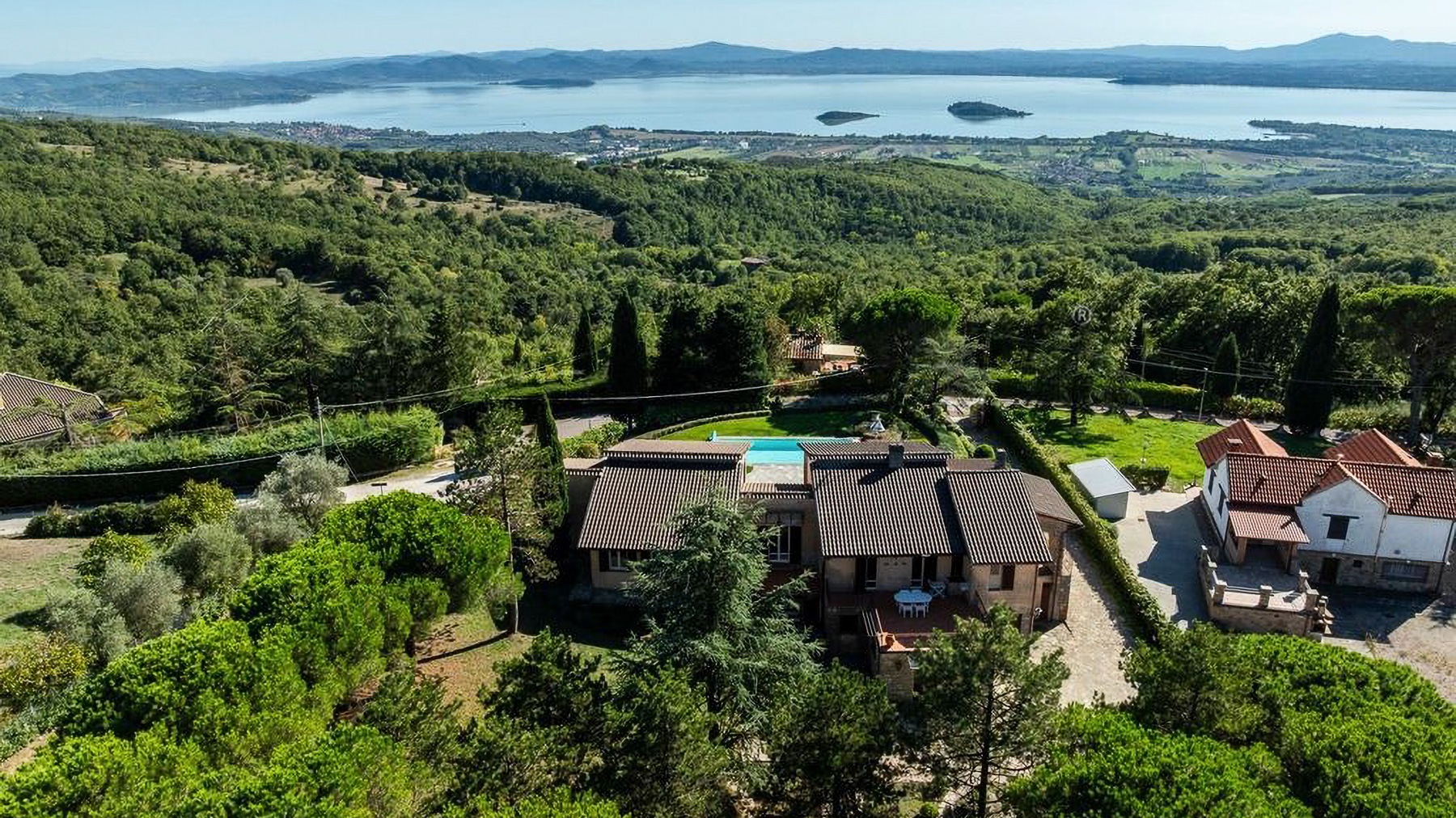 Immersa nel verde lussureggiante delle colline umbre, questa villa rappresenta un rifugio di serenità e raffinatezza. Il canto degli uccelli e il profumo della natura circostante accolgono gli ospiti in un abbraccio tranquillo, mentre il sole si riflette dolcemente sulle acque del Lago Trasimeno, creando un'atmosfera magica e rilassante. La proprietà si estende su circa 425 mq e offre spazi generosi e ben distribuiti, con un totale di nove stanze e tre bagni. Le ampie vetrate lasciano entrare la luce naturale, illuminando il soggiorno accogliente e la sala da pranzo. All'esterno, un giardino privato di 3.000 mq invita a passeggiate tra piante curate e zone ombreggiate, mentre la piscina in perfette condizioni diventa il fulcro delle giornate estive. Situata a Lisciano Niccone, in provincia di Perugia, questa villa è un esempio di vita in campagna all'insegna del lusso e del comfort. Vivere qui significa svegliarsi ogni giorno con una vista mozzafiato sul lago e trascorrere serate indimenticabili sotto un cielo stellato. Le possibilità di personalizzazione degli interni permettono di creare ambienti che rispecchiano appieno il proprio stile e le proprie esigenze, trasformando ogni angolo in un'esperienza unica. Questa villa è un'opportunità irripetibile nel panorama immobiliare di lusso, coniugando eleganza senza tempo e comfort moderno. Un gioiello incastonato nel cuore dell'Umbria, dove la vita si assapora con lentezza e intensità.
