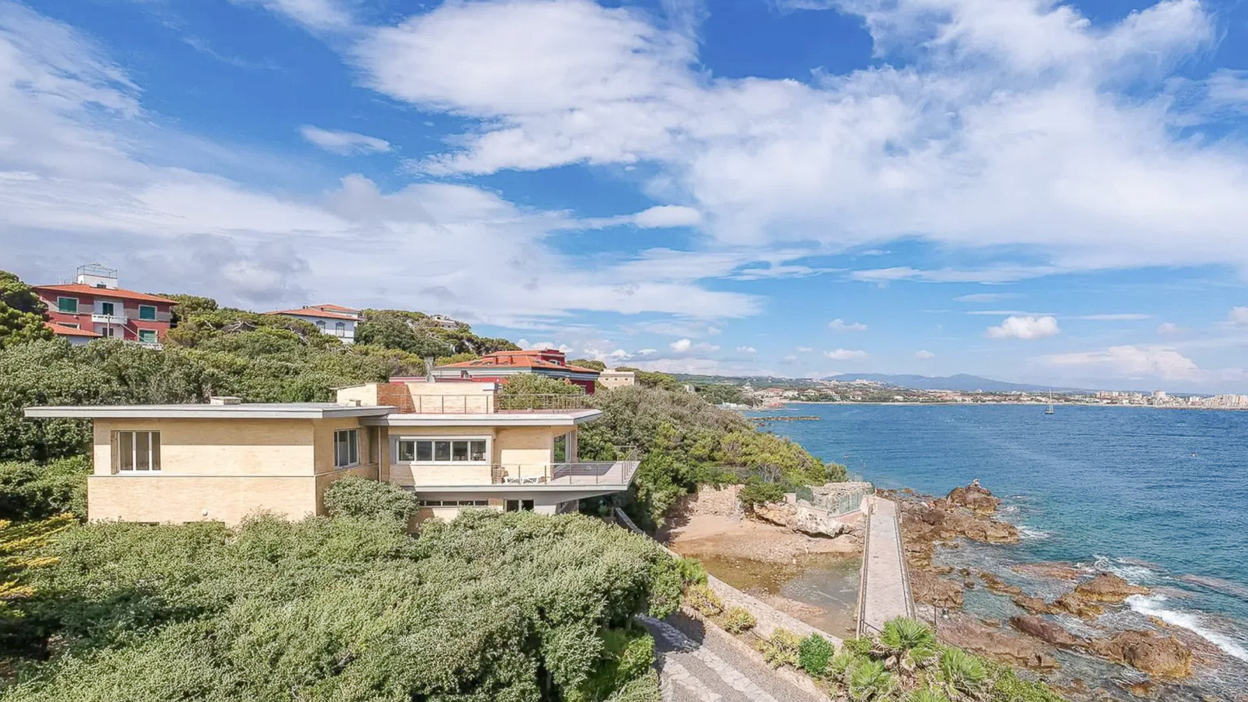 Immagina di svegliarti avvolto dai caldi raggi del sole toscano, mentre l'eco delle onde del Mediterraneo riempie l'aria. Questa magnifica proprietà a Castiglioncello, incastonata tra le celebri scogliere e le acque cristalline della Costa degli Etruschi, offre un rifugio di lusso dove i sensi vengono continuamente stimolati dalla bellezza naturale circostante. Con una generosa superficie di 550 mq, questa residenza si compone di nove stanze eleganti e sette bagni raffinati, progettati per offrire il massimo del comfort e della privacy. Le ampie finestre incorniciano vedute mozzafiato sul mare, mentre gli interni moderni e luminosi, con pavimenti in legno pregiato e un design minimalista, creano un ambiente sereno e accogliente. Situata a Rosignano Solvay-Castiglioncello, Livorno, questa proprietà rappresenta il perfetto connubio tra modernità e tradizione, immersa in un paesaggio costiero senza pari. Vivere qui significa assaporare ogni istante; immagina lunghe giornate estive trascorse a contemplare l'infinito azzurro dalle grandi vetrate, cene conviviali con amici e famiglia in un ambiente che unisce eleganza e semplicità, e la possibilità di lasciarsi cullare dal rilassante suono delle onde ogni sera. Questa dimora non è solo una casa, ma un'esperienza esclusiva che incarna il prestigio e l'unicità del vivere sul mare. Un'opportunità imperdibile per chi sogna di possedere un angolo di paradiso sulla costa toscana.
